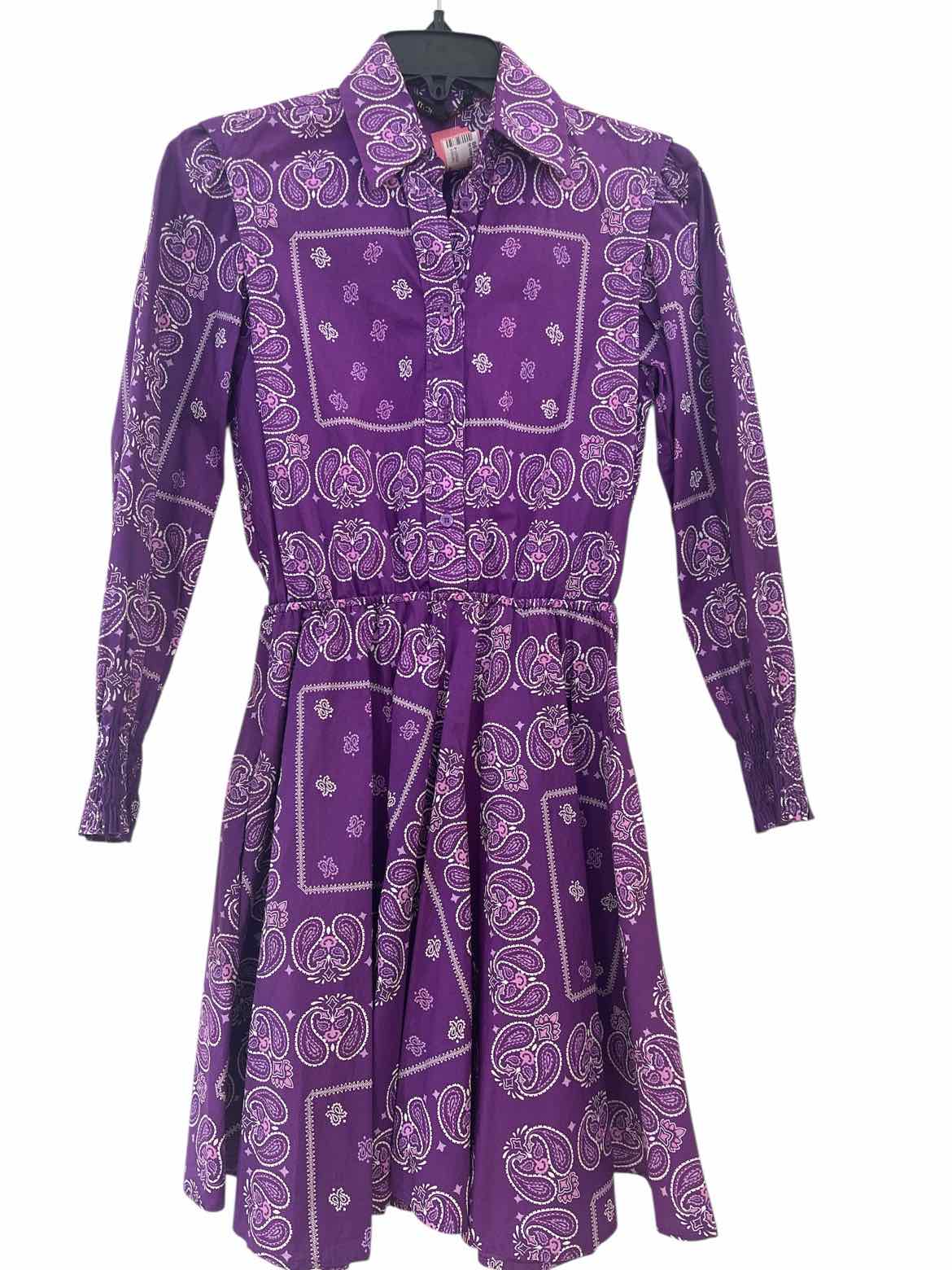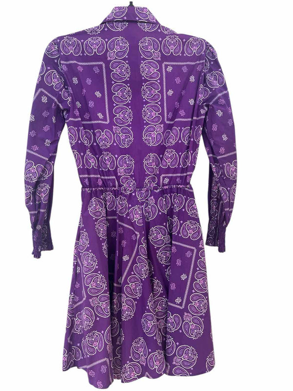 Featuring a chic mini fit-and-flare silhouette, the Maje Purple Size 34 Dress brings a touch of refined women's consignment fashion to your wardrobe. The vibrant purple hue and paisley print deliver a distinctive look, while the classic collared, long sleeve, button-down design adds a polished finish. As an authentic luxury resale piece in very good condition, this pre-loved designer dress combines style and value for those seeking unique additions to their closet. Discover the charm of curated fashion with this remarkable find from Maje.