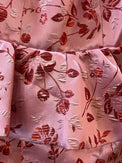 Strapless floor length, pink with red metallic Brocade cherry blossom, mermaid style, peplum, gown