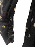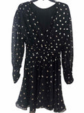 l/s, v-neck, ruched pleated waist, gold thread polka-dot
