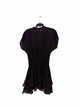 mini length, short sleeves, loose fit, waist scrunch, buttons down front