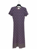 The Purple Multi pattern of this paco rabanne Purple Multi Size M Dress brings bold color to authentic luxury resale. Designed with a round neck, short sleeves, and a fitted maxi silhouette, it features purple, black, and pink geometrical designs with coordinating stripes at the bottom for a cohesive look. Crafted in glitter fabric and finished with a snap button at the back of the neck, this new-with-tags piece offers a polished option in pre-loved designer and women's consignment fashion. A chic choice for anyone seeking distinctive color and design within curated resale.