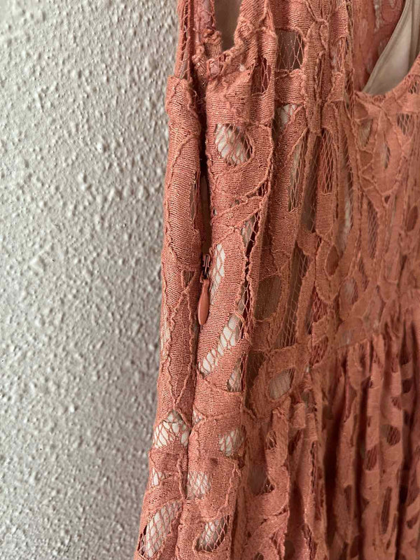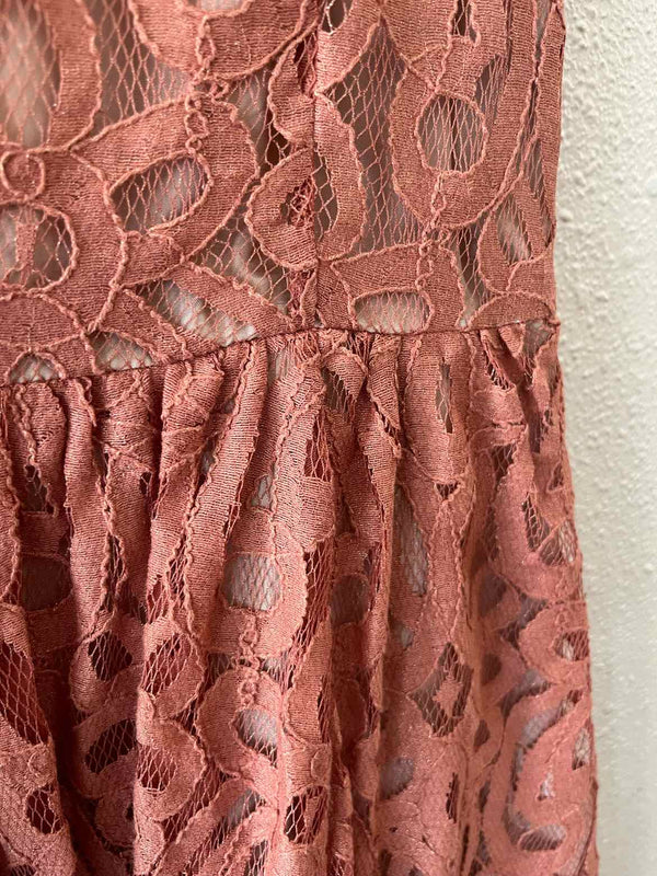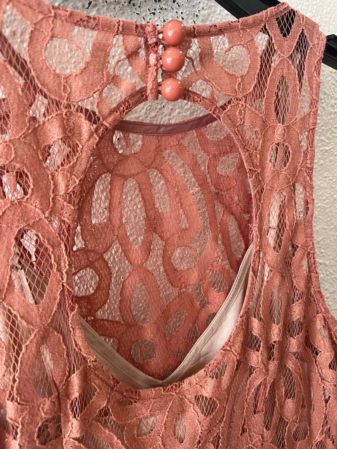 The color combination of dusty rose and nude gives the Plenty by Tracy R Dusty Rose and Nude Dress a delicate, feminine presence ideal for any occasion. This pre-loved designer piece from an authentic luxury resale collection features an above-the-knee fit and flare silhouette, crafted with Mariposa floral crochet lace for a beautiful texture. Thoughtful details like a crew neck, sleeveless cut, lined interior, and secure closures—including a back button cutout and hidden side zipper—offer both elegance and comfort. Enhance your women’s consignment fashion wardrobe with this chic find in very good condition.