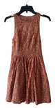 sleeveless,crew neck,above knee,sold dusty pink rose,nude,Mariposa floral chrochet lace fit and flare dress,back button cutout closure,hidden side zip closure,lined