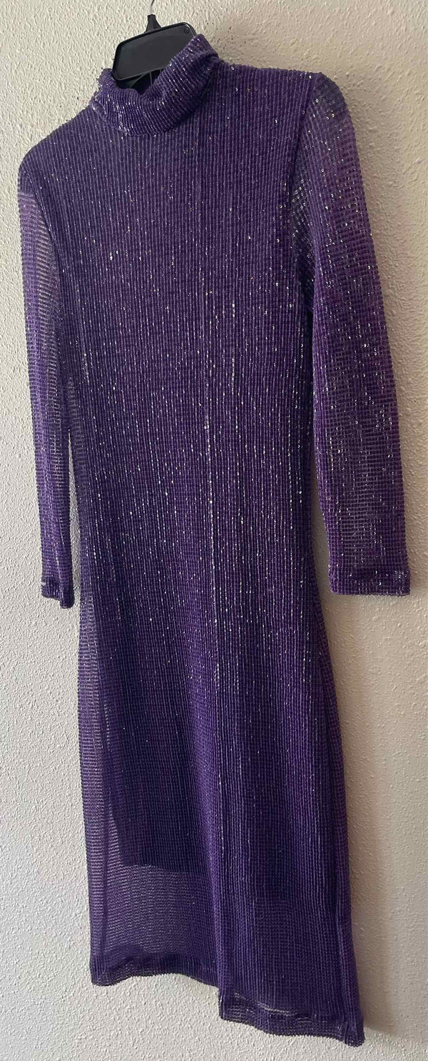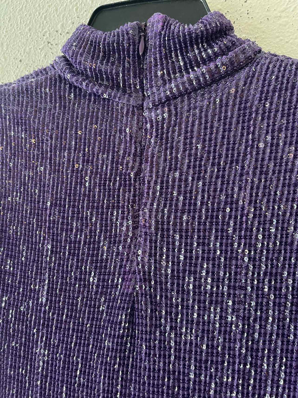 long sleeve,turtle neck,below knee,solid purple,sequin turtle neck midi dress,back zip closure,semi lined
