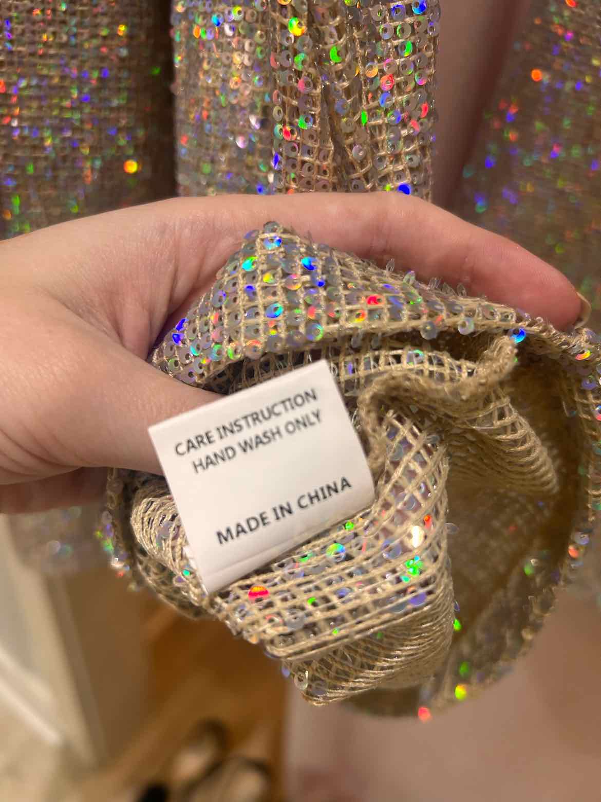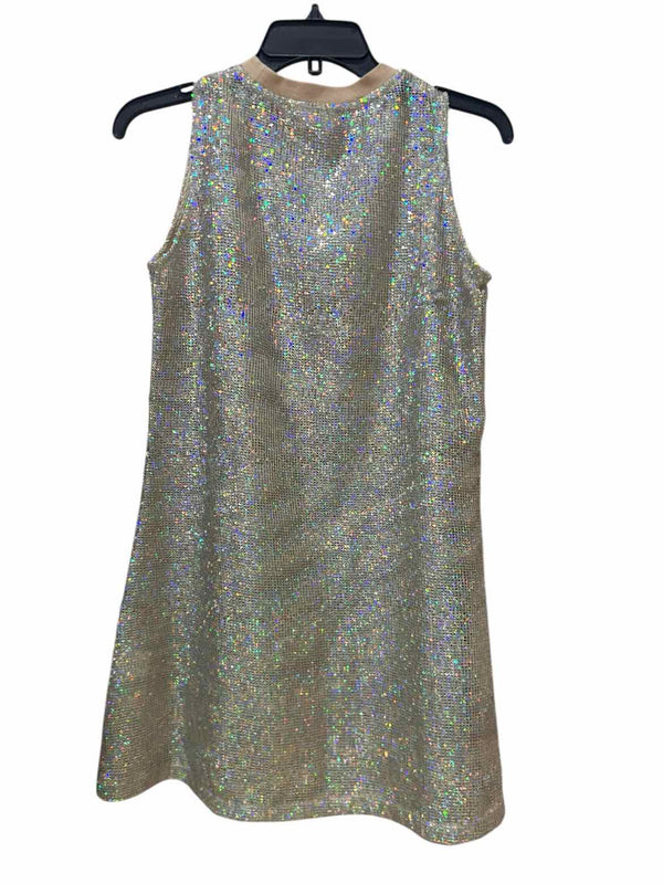 Crafted from shimmering sequin fabric, the Queen of Sparkles Iridescent Size M Dress adds a distinctive touch to any women's consignment fashion collection. This pre-loved designer mini dress features an iridescent finish and gold shimmer, with a sheer shift silhouette that offers both elegance and comfort. The round neck and tan lining enhance its refined appeal, making it a notable piece in the world of authentic luxury resale. Sourced in Baton Rouge, this dress showcases the artistry and quality that Queen of Sparkles is known for, offering a chic option for those seeking unique, pre-owned style.