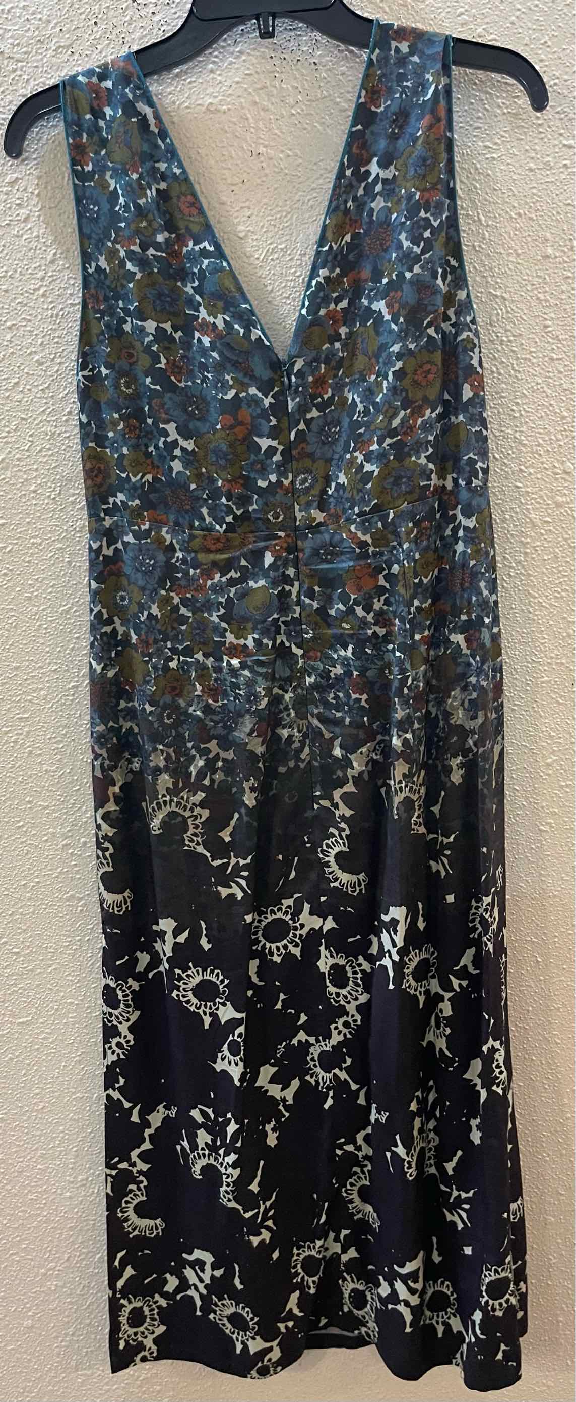 The blue multi floral and abstract pattern of the Rachel Comey Blue Multi Size 2 Dress brings a refreshing touch to women's consignment fashion. As a pre-loved designer piece in very good condition, this authentic luxury resale dress features a sleeveless silhouette, a flattering v-neck, and a below-the-knee length. Side slits at the hem and a back zip closure add both ease and interest, while the Calvado dress's unique design celebrates Rachel Comey's signature creativity. Discover a notable addition to your wardrobe, thoughtfully curated and ready to enhance any collection of contemporary designer styles.