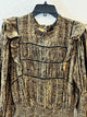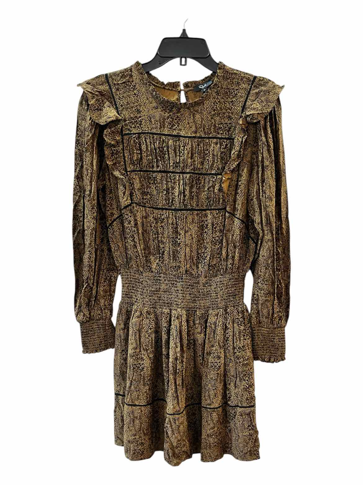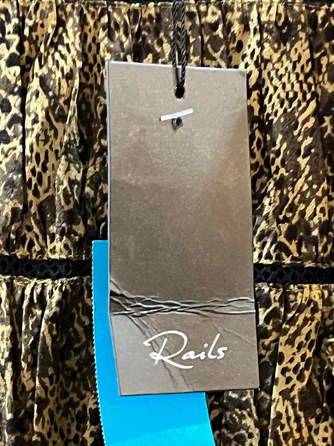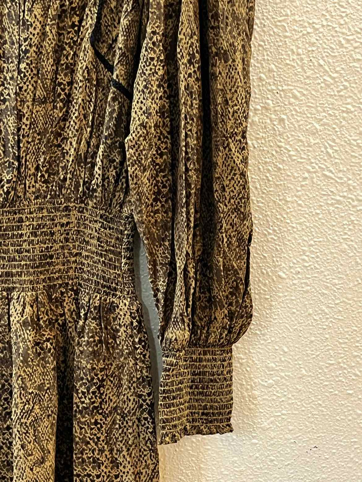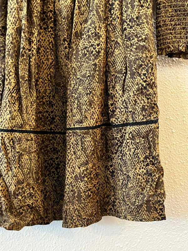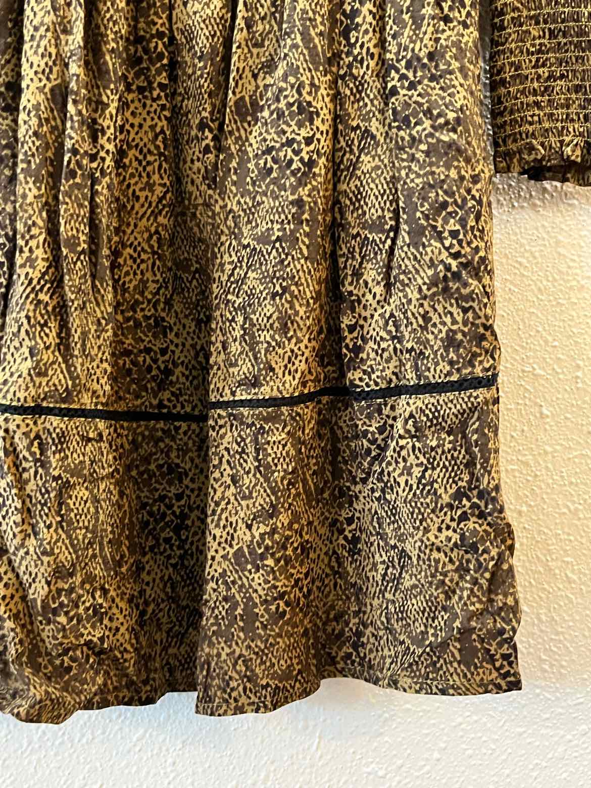 The distinctive python print and olive green multi-color palette of the Rails olive green multi Size M Dress bring a unique twist to pre-loved designer fashion. This authentic luxury resale find features a flattering above-knee silhouette, complemented by ruffle trim shoulders and elastic cuff puff sleeves for added charm. With details like a crew neck, elastic waistband, and lattice lace trim, this women’s consignment fashion piece offers remarkable texture and shape. New with tags, this dress showcases a blend of playful refinement and modern style, making it a notable addition to any curated wardrobe.