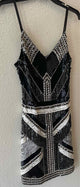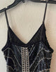 sleeveless, v neck,black multi,Daisy sequin embellished slip dress,adjustable spaghetti straps,hidden side zip closure,lined