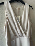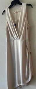 NWT Sleeveless midi, asymmetric hem, solid champagne, ruched pleated side and bodice, dress