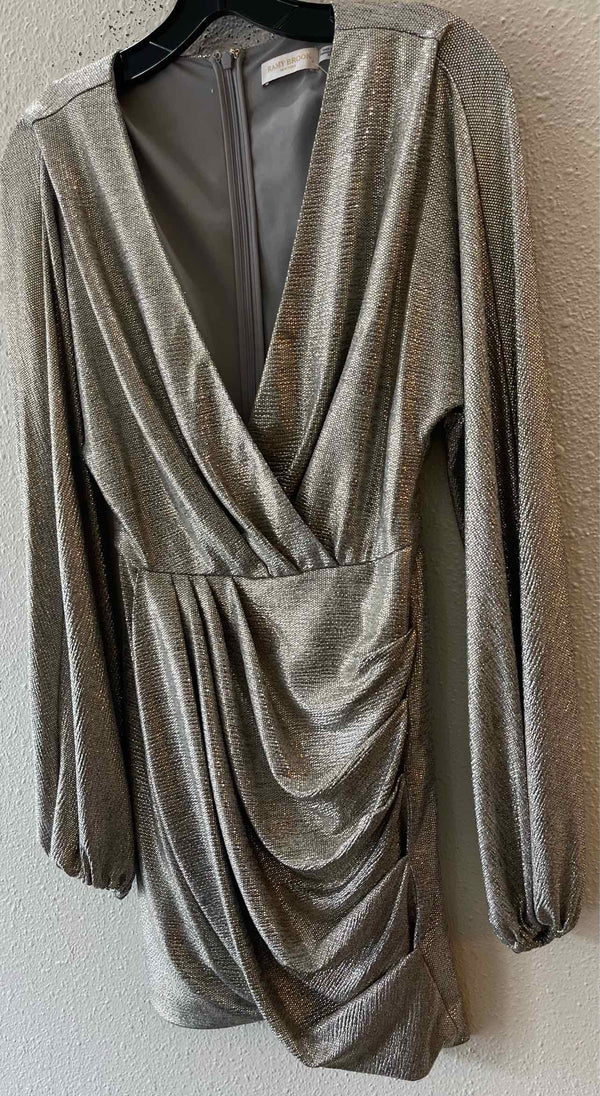 The metallic gold hue of the Ramy Brook metallic gold Size XS Dress brings a distinctive edge to authentic luxury resale. This pre-loved designer mini dress features a surplice neck, long balloon sleeves with elastic cuffs, and a chic above-the-knee length, blending comfort with eye-catching style. Lined for a polished finish and secured with a back zip closure, it’s ideal for women’s consignment fashion enthusiasts seeking a unique addition to their wardrobe. Carefully curated in very good condition, this piece from Ramy Brook’s collection highlights the elegance and flair of modern designer fashion.