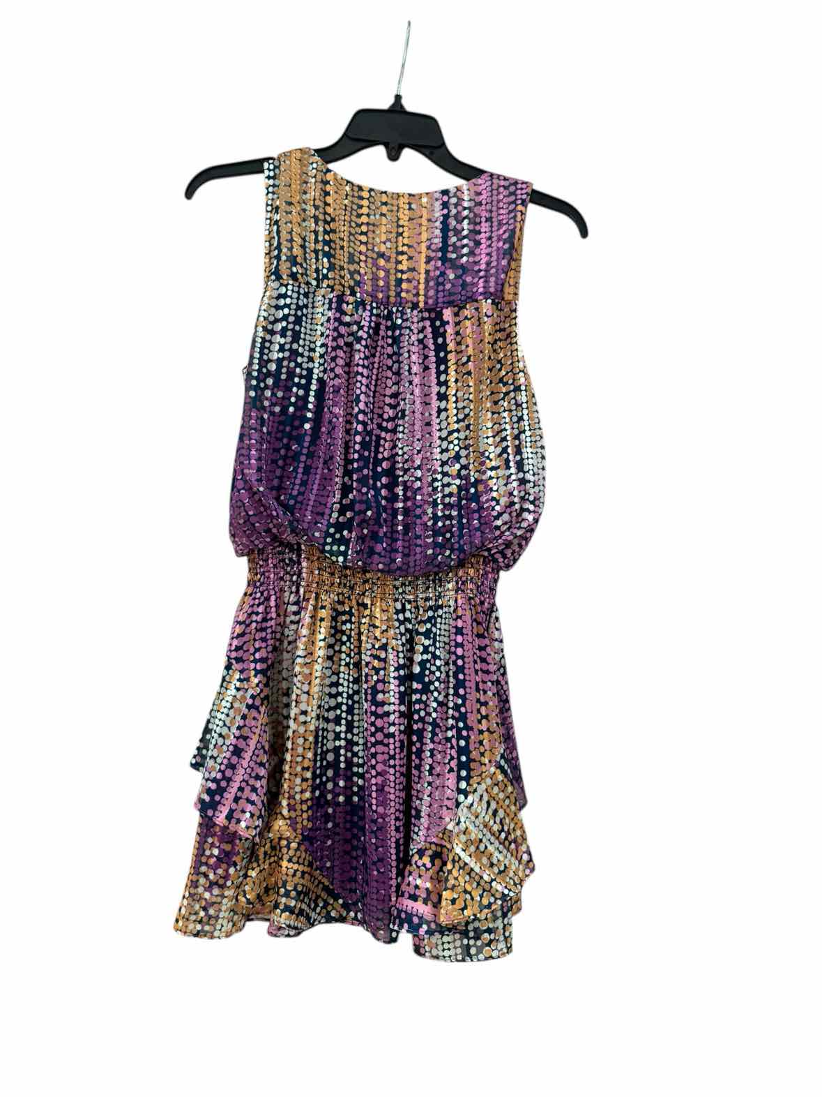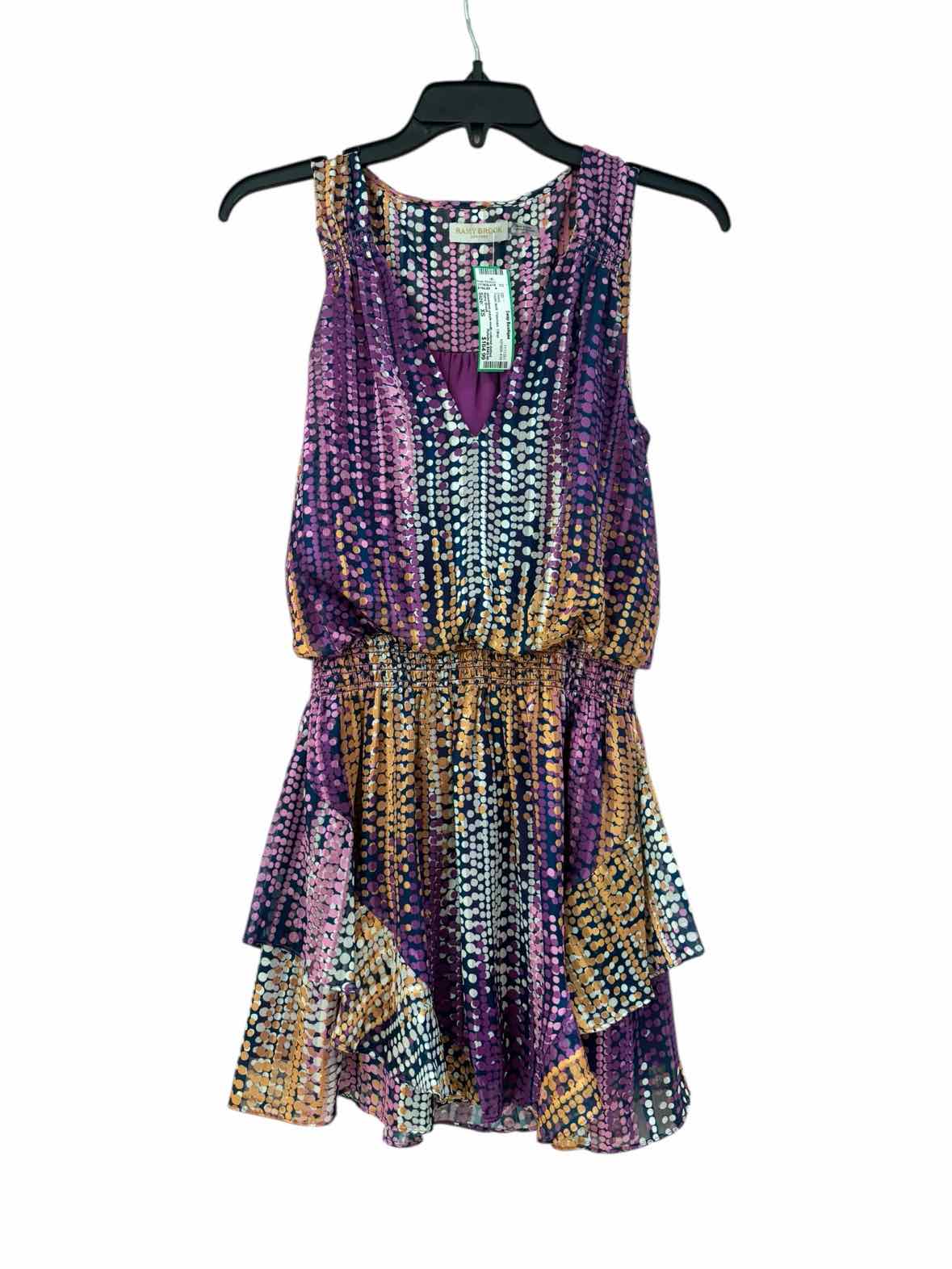 Featuring a playful fit and flare silhouette, the Ramy Brook Purple Multi Size XS Dress captures the essence of chic, pre-loved designer style. This authentic luxury resale piece showcases a sleeveless mini dress design with a vibrant purple multi-colored dotted pattern, v neckline, and a ruffled skirt for added movement. The smocked waistband ensures a comfortable, flattering fit, making it a unique addition to any women's consignment fashion collection. Crafted from quality polyester, this dress combines elegance and versatility, perfect for refreshing your wardrobe with a touch of color and feminine charm.