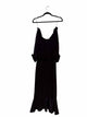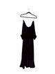 midi length dress, long sleeve, solid black, flowy fit, off the shoulder style
