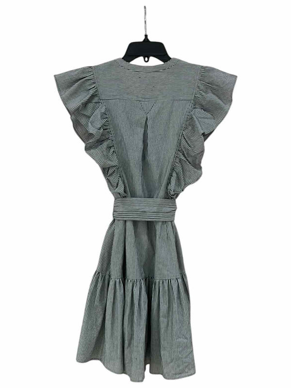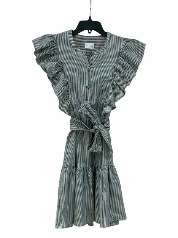 The black and white palette of the Saylor Black and white Dress brings a timeless charm to women’s consignment fashion. This pre-loved designer find features a playful ruffle cap sleeve, ruffle skirt, and a round neckline, adding a touch of feminine detail to your wardrobe. The authentic luxury resale piece includes a button-down front with brown buttons, zip side closure, and a versatile tie around the waist, allowing for a personalized fit. Experience the exceptional style and carefully curated quality that define this dress, now available through trusted consignment. Refresh your collection with a unique, chic silhouette from Saylor.
