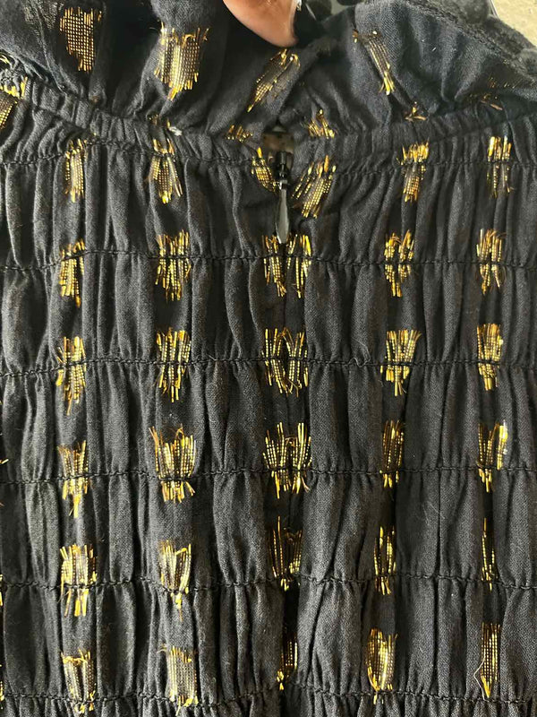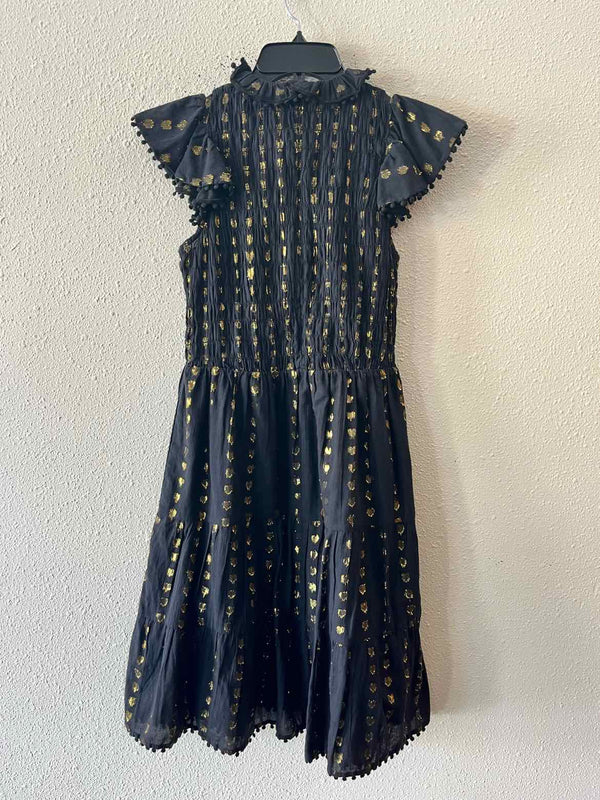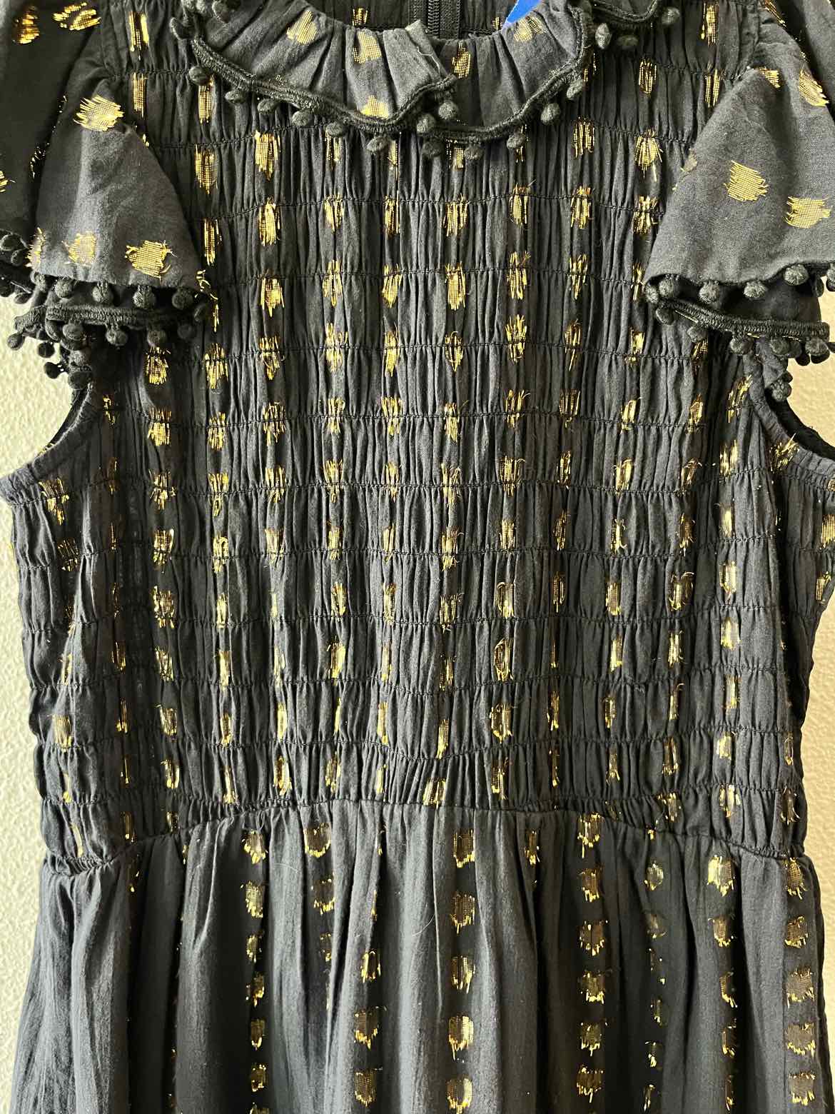 Featuring a chic flutter cap sleeve and a high neckline, the sea Black and Gold Size 2 Dress captures the essence of refined women's consignment fashion. This pre-loved designer piece is crafted with Laura metallic fil coupe, offering a striking combination of black and gold tones that bring a touch of polished elegance to any wardrobe. The smocked bodice, tiered hem, and hidden back zip closure showcase thoughtful details, while its above-knee silhouette delivers a timeless yet modern look. Authenticated for luxury resale, this dress arrives in very good condition, reflecting both style and value for those seeking authentic designer pieces.