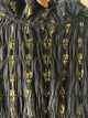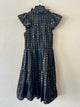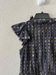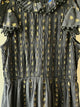 flutter cap sleeve,high neck,above knee,black,gold,Laura metallic fil coupe smocked dress,hidden back zip closure,smocked bodice,tiered hem