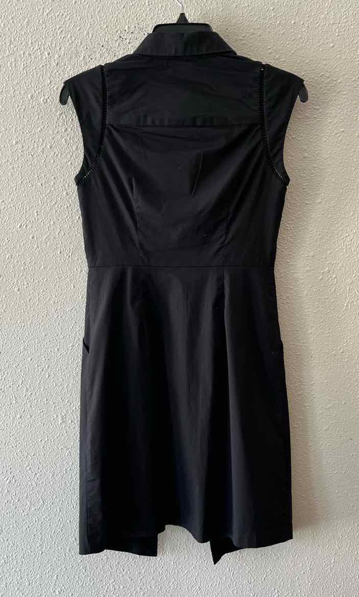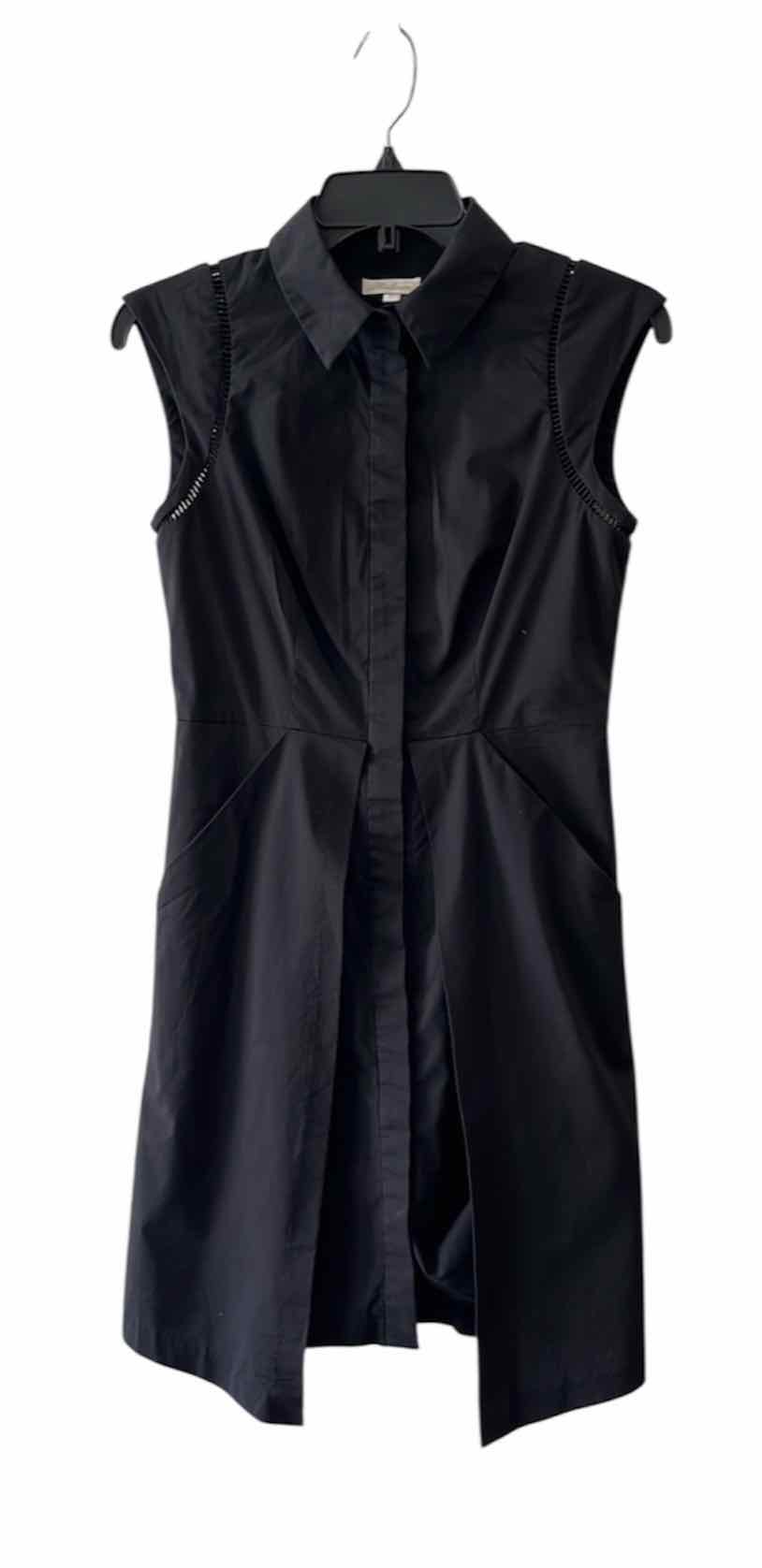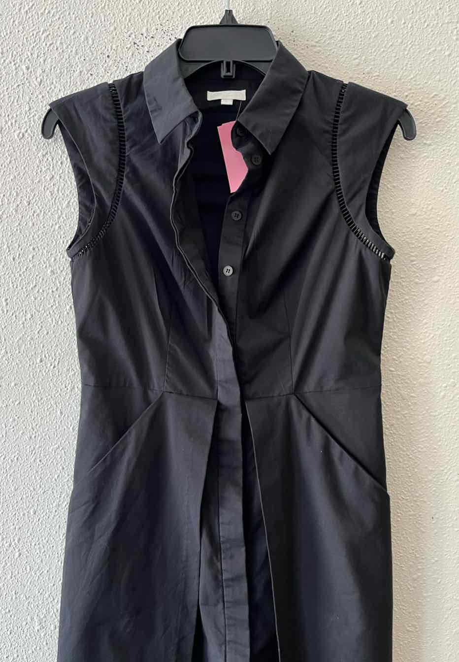 Shoshanna's signature attention to detail defines this Shoshanna Black Size 2 Dress, offered through authentic luxury resale. This pre-loved designer piece features a timeless sleeveless silhouette with a beautiful solid black hue, complemented by a hidden front button and subtle laser cutout detailing. The shirt dress style and flap detail at the front skirt add a tailored touch, making it a unique find in women’s consignment fashion. Sourced from New Orleans, this dress brings a blend of refined elegance and modern design to your wardrobe—all while promoting sustainable style.