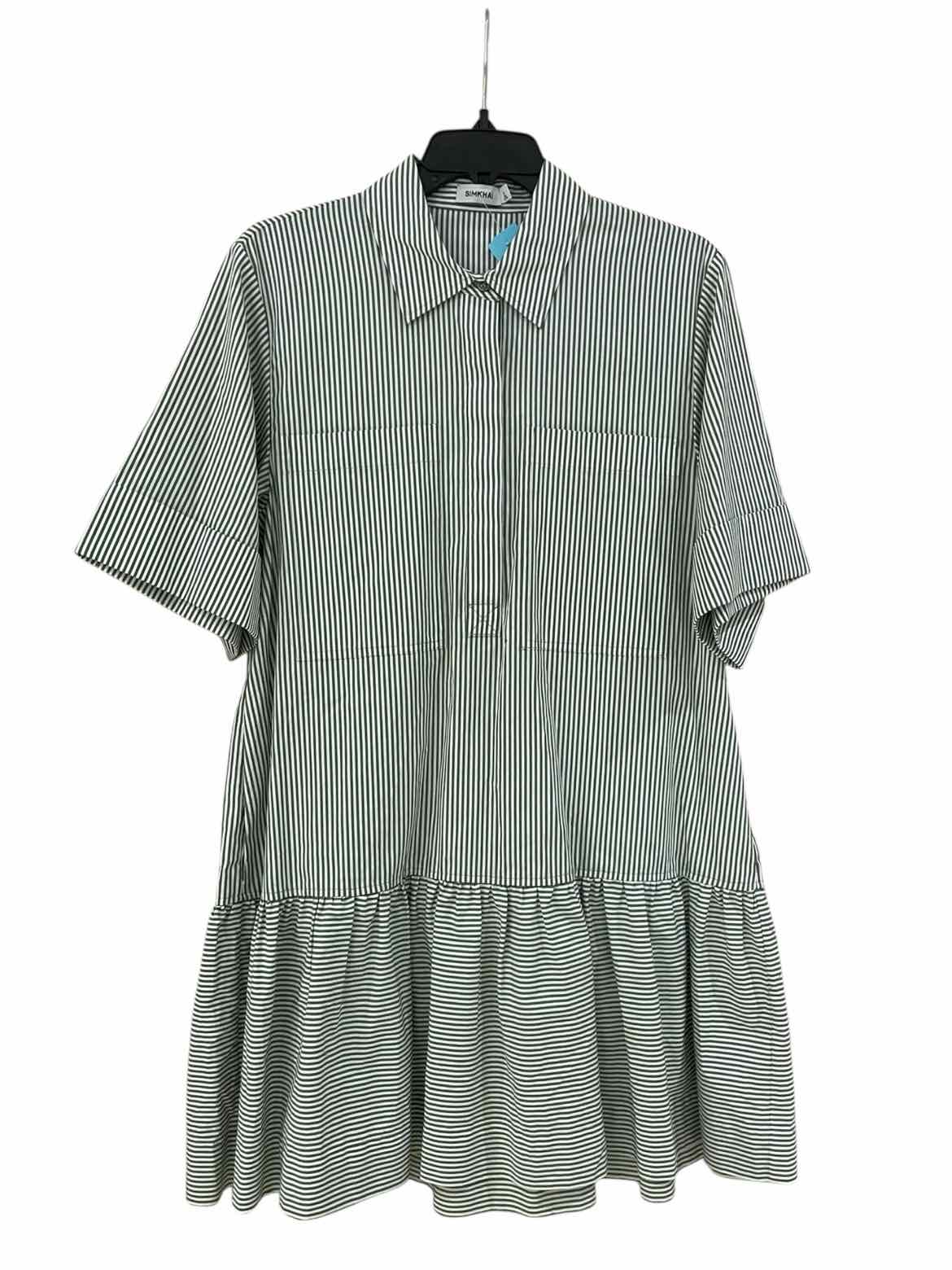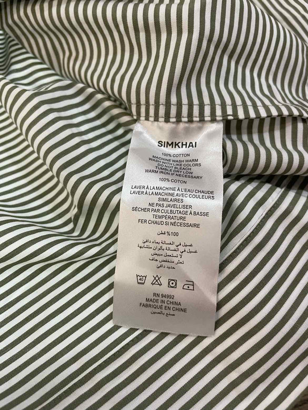 The gray and white stripes of the Simkhai White/Grey Size M Dress bring a fresh twist to women’s consignment fashion. This pre-loved designer piece features a mini silhouette with short sleeves and a gathered drop waist, all crafted from 100% cotton for breathable comfort. A shirt collar and front pockets add tailored charm, while its good condition ensures lasting appeal through authentic luxury resale. Whether you’re looking to refresh your wardrobe or add a classic touch, this dress highlights Simkhai’s attention to detail and timeless design—making it a smart addition for anyone who values versatile, gently owned style.
