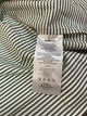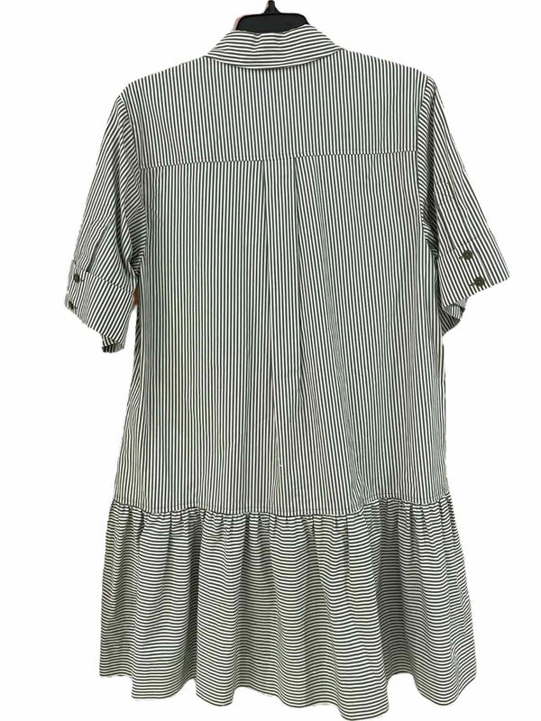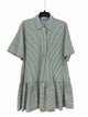 Mini, short sleeves, gathered drop waist, shirt collar, gray/white skinny stripes,front pockets