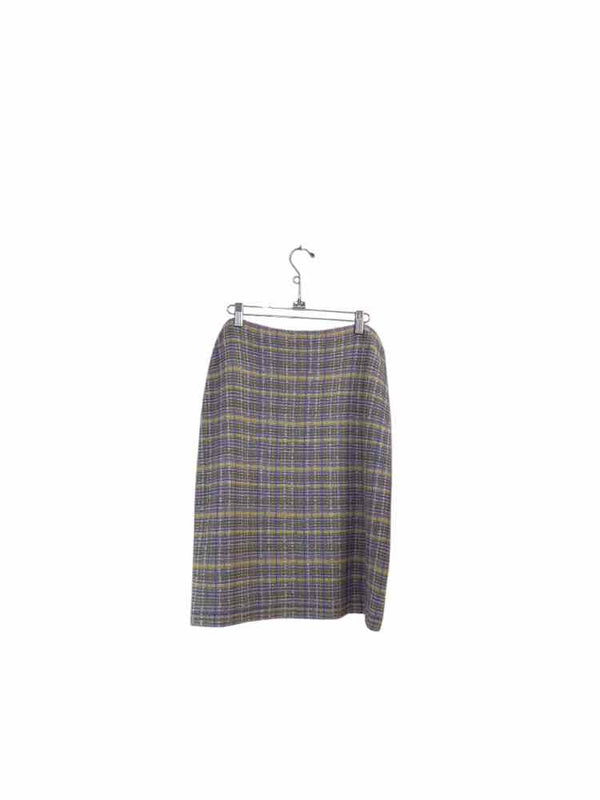 The periwinkle green and gray pattern of the st john Periwinkle and multi Size 10 Skirt brings a distinctive flair to authentic luxury resale and pre-loved designer style. This midi skirt, crafted from woven fabric and featuring a convenient side zipper, reflects the renowned attention to detail found in women's consignment fashion. With its new-with-tags (NWT) condition, it’s a chic addition for those seeking refined pieces from trusted designer labels. The multi-tonal palette makes this skirt a versatile choice for any wardrobe refresh, offering both elegance and comfort from a notable brand in modern fashion.