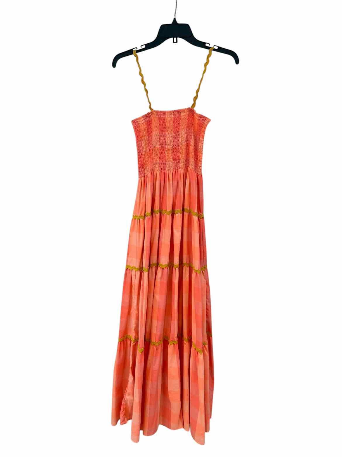 The soft salmon hue of the sundress Salmon Size M/L Dress brings a refreshing and playful energy to women’s consignment fashion. This pre-loved designer dress is made from cotton, offering a lightweight feel for authentic luxury resale shoppers seeking comfort and style. Notable details such as a ruched bodice, ric-rac straps and trim, and a tiered skirt enhance its distinctive silhouette. Carefully curated, this versatile piece embraces feminine charm and unique craftsmanship, making it a beautiful addition to any wardrobe.