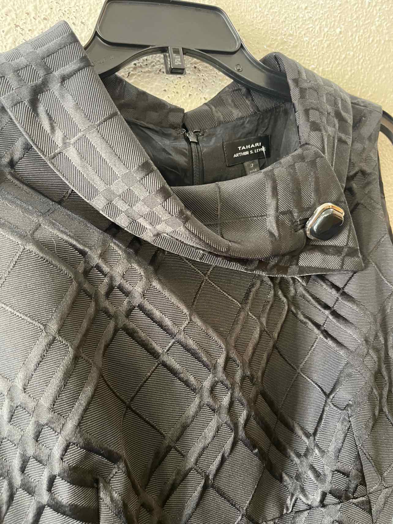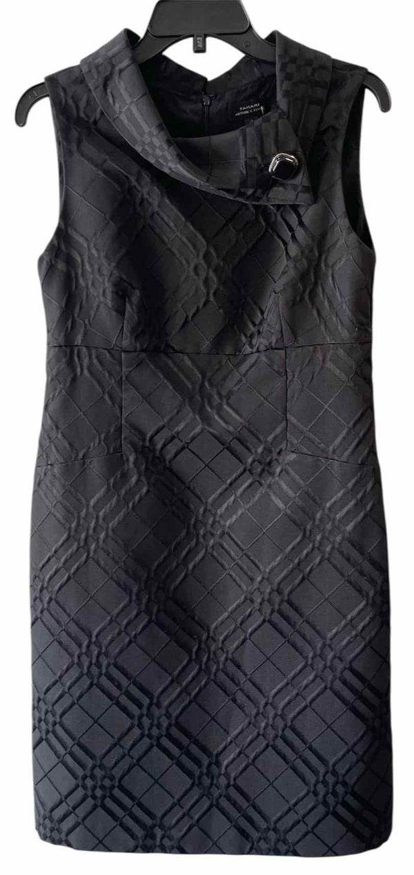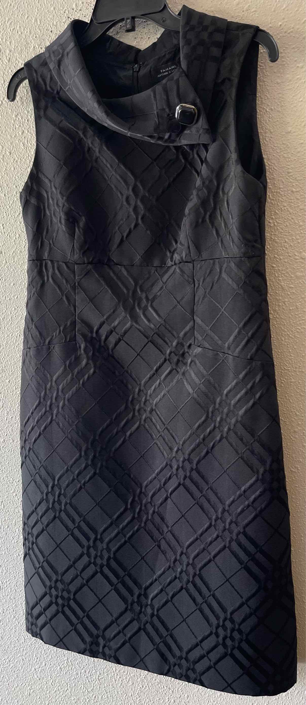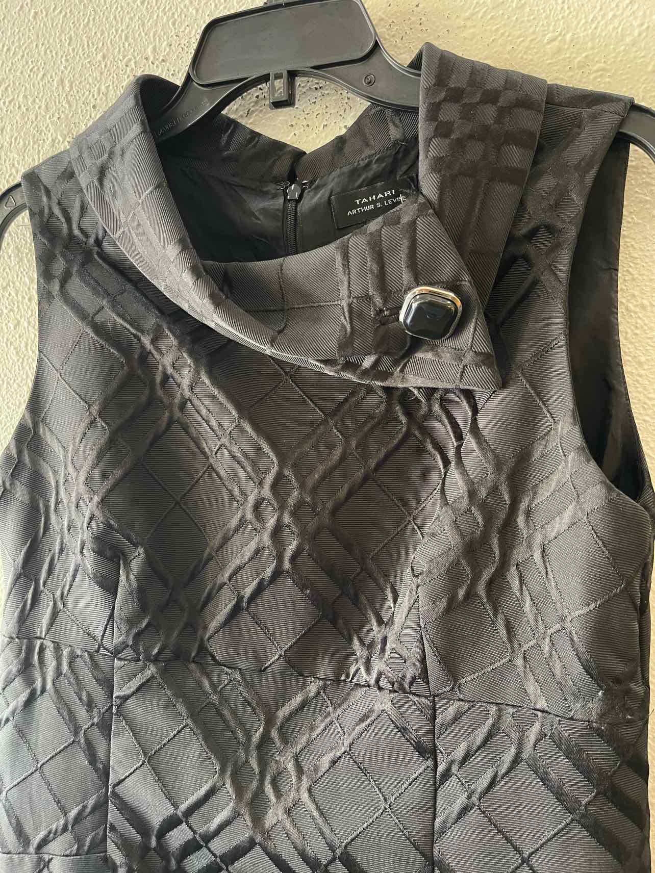 Featuring a chic jacquard plaid shift silhouette, the Tahari Black Size 12 Dress brings refined polish to authentic luxury resale. This pre-loved designer piece showcases a sleeveless cut, cowl neck, and below-knee length in solid black for a timeless look in women’s consignment fashion. The embellished button neck detail adds a touch of elegance, while the back zip closure and lined construction offer comfort and structure. In very good condition, this dress reflects Tahari’s tailored aesthetic and is an exceptional option for anyone seeking curated, pre-owned style from a trusted brand.