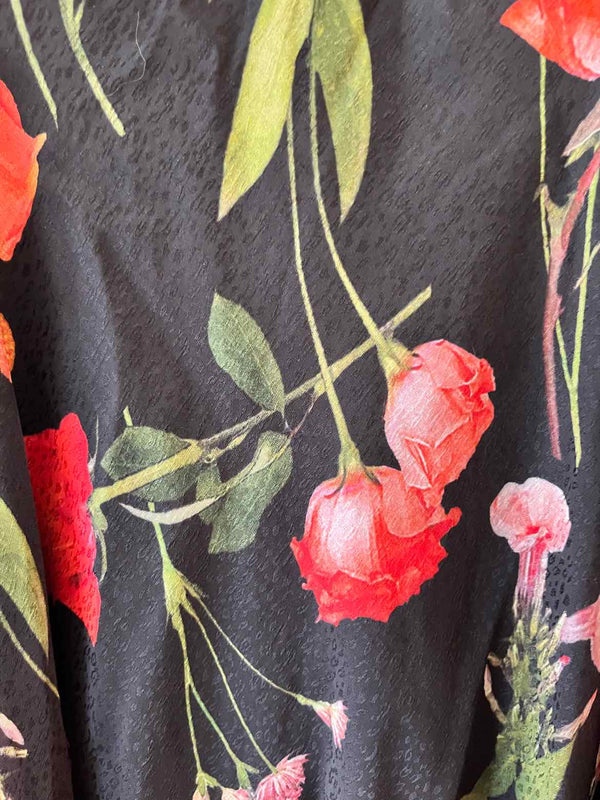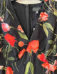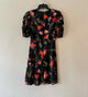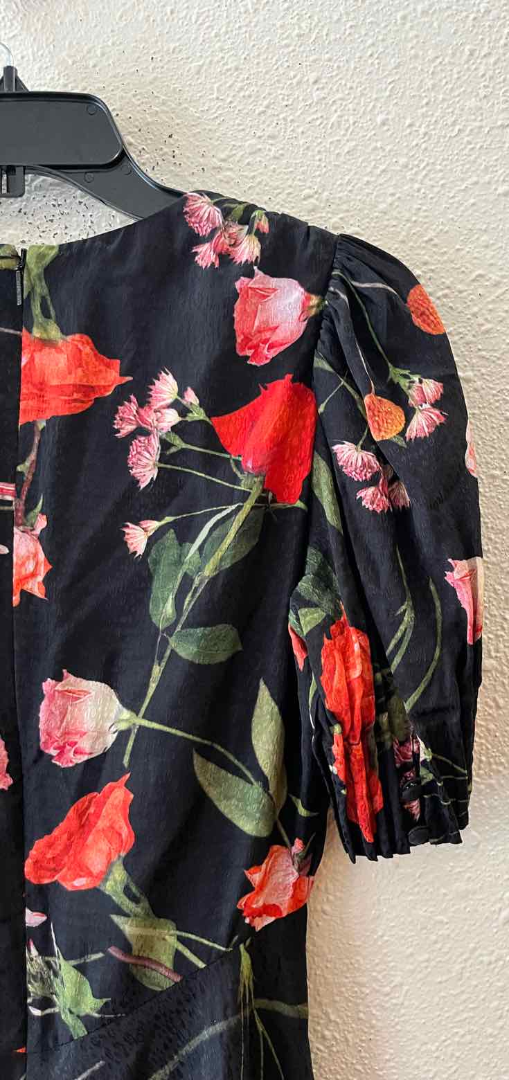 NWT Short sleeve, knee length, black with red and green rose/floral print, swing dress, vneck