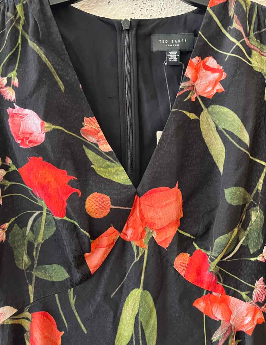 Authenticated and carefully curated, the Ted Baker Black Multi Size S Dress is a refined addition to any women’s consignment fashion collection. Featuring a NWT status, this piece brings together authentic luxury resale with a fresh, unworn appeal. The beautiful black base is enhanced by a striking red and green rose print, while the short sleeves, flattering v-neck, and swing silhouette offer chic comfort. Ideal for those seeking pre-loved designer pieces that blend elegance with everyday versatility, this dress is located in New Orleans and available in size S.
