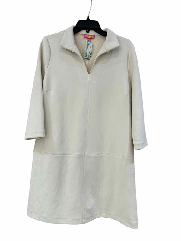 Crafted from soft felt, this thml Off White Size M Dress brings a polished touch to any women’s consignment fashion collection. The quarter sleeves, collared v-neck, and boxy silhouette offer a refined yet relaxed look, making it a versatile piece for authentic luxury resale shoppers. Its off white shade is both classic and contemporary, while the medium size ensures a tailored fit. Enjoy the unique details and quality of a pre-loved designer piece that has been carefully curated for your wardrobe. Discover the appeal of chic comfort with this exceptional dress from thml.