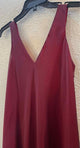 Sleeveless,v neck,solid dark red sheen chiffon midi shift dress,back cutout