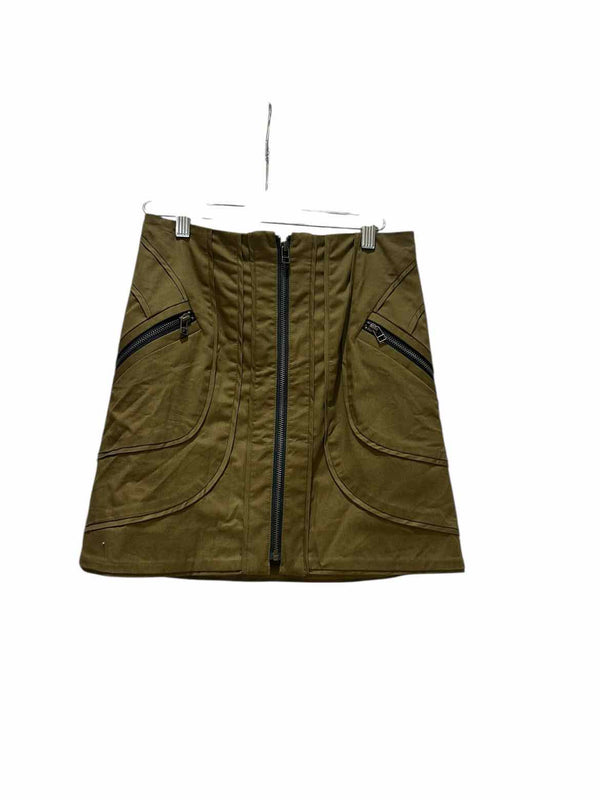 The army green hue of this Veronica Beard Army Green Size 0 Skirt brings a fresh, modern edge to women’s consignment fashion. Designed in a flattering mid-thigh length, this pre-loved designer piece features a striking front bronze zipper and practical side zipper pockets, combining utility with authentic luxury resale appeal. Crafted in a poly blend fabric and sized for a tailored fit, it reflects both style and versatility. Discover the quality and unique flair that Veronica Beard is known for through this curated skirt, ready to add refined polish to your collection.