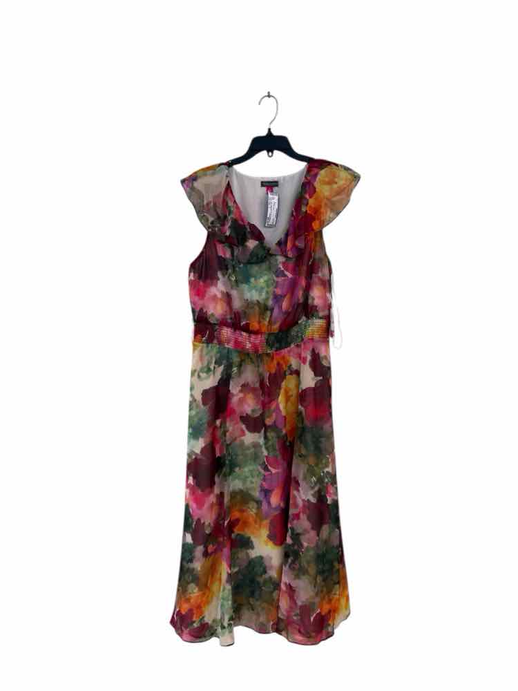 The vibrant tie dye floral print of the Vince Camuto Pink Multi Size L Dress brings a playful and contemporary touch to women's consignment fashion. Showcasing a sleeveless, v-neck silhouette with a flattering smocked waist and chic midi length, this pre-loved designer piece from our authentic luxury resale collection offers both comfort and modern appeal. In a remarkable Pink Multi colorway and new condition, this dress is thoughtfully curated for those seeking unique, high-quality wardrobe additions. Experience the blend of designer craftsmanship and trusted resale with this elegant Vince Camuto dress.