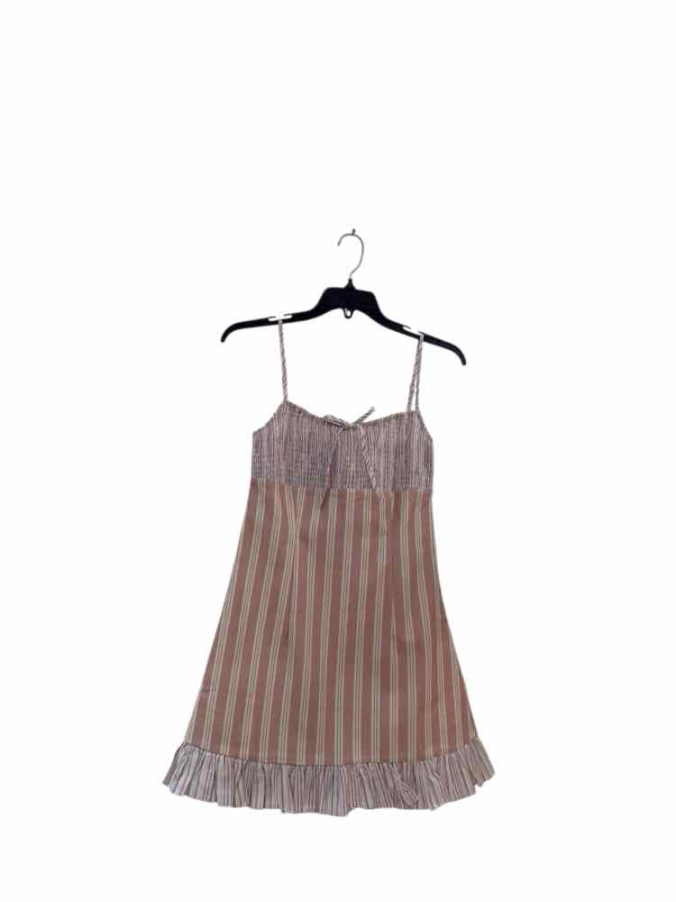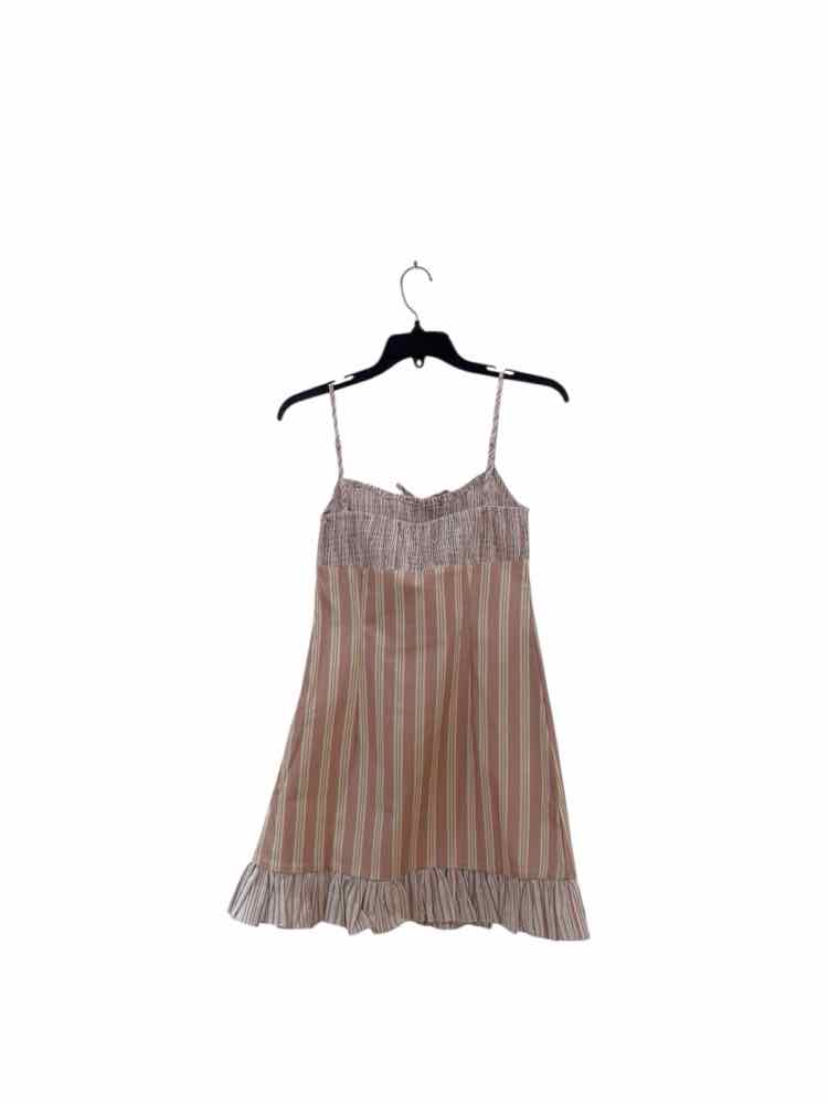NWT mini length, Pink stripe, spaghetti straps, zipper on side, pale pink multi color, bow in front
