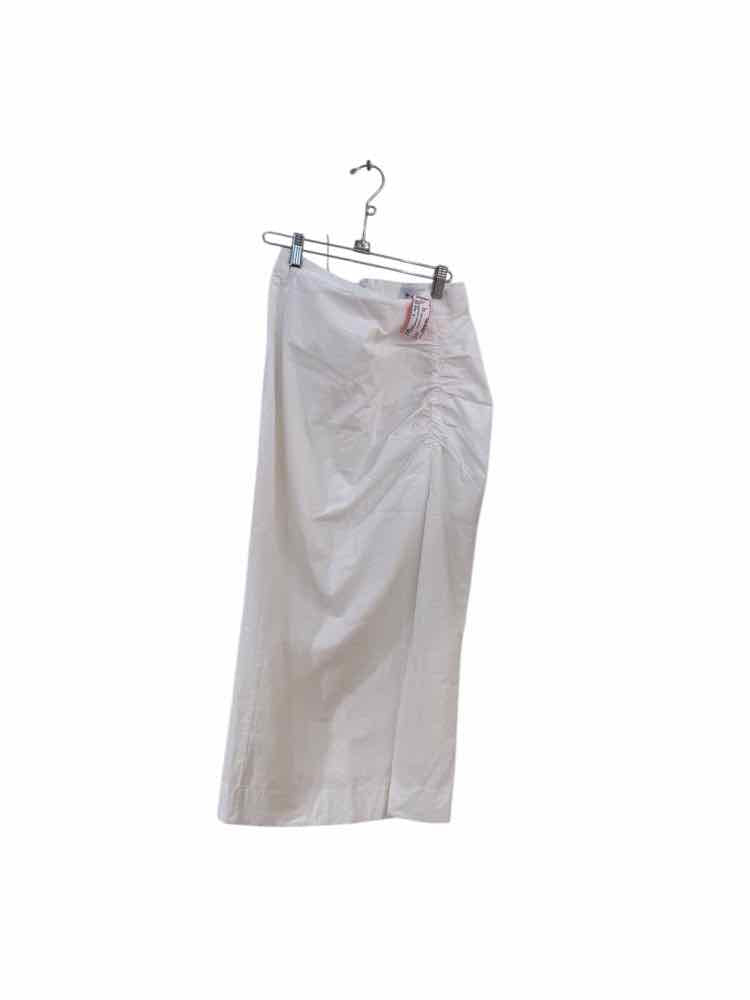 The crisp white of this Wray White Size S Skirt brings a fresh and polished touch to any women's consignment fashion collection. Designed in a midi length with a distinctive scrunch detail on one side, this pre-loved designer piece combines modern style with authentic luxury resale value. The skirt features a solid cotton construction and a convenient back zipper, making it a versatile addition to any wardrobe. Offered in very good condition, this skirt is a refined option for those seeking high-quality, curated pieces that embody both style and value.