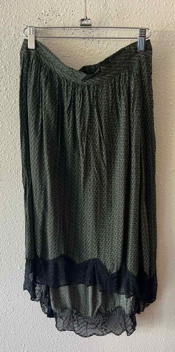 The color-rich design of the Zadig & Voltaire Green multi Size 36 Skirt brings a refreshing touch to any modern wardrobe. This pre-loved designer piece, available through authentic luxury resale, features a vibrant green multi palette and intricate Joslin logo-printed lace. A high rise silhouette, elastic backband, and on-seam pockets combine comfort with style, while a lace trim hem adds a distinctive finish. Carefully curated for women's consignment fashion, this skirt is in very good condition and offers both versatility and designer appeal for those seeking unique, high-quality pieces.
