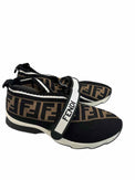The color-blocked design of these Fendi Brown black and white Size 38.5 Shoes brings a modern edge to authentic luxury resale. These Rockoko knit sneakers feature a slip-on silhouette with a velcro strap, showcasing the iconic Fendi logo name on one side and “love” on the other for a distinctive designer touch. Offered in very good condition, they exemplify pre-loved designer style within women’s consignment fashion. Their brown, black, and white palette adds versatile appeal, while the branded details highlight Fendi’s luxury heritage. A notable find for anyone seeking curated, high-end footwear from a trusted resale source.