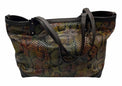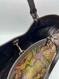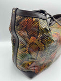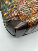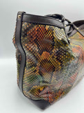 Price adjust for wear* Green, burnt orange, yellow and brown snakeskin body with clasp closure top of tote "Python Craft Tote"