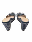 The blue and white striped design of the Jimmy Choo Blue and White Size 39 Shoes brings a fresh, patterned twist to authentic luxury resale. This wedge sandal features a criss cross toe strap and a metal toe part, adding chic detail to pre-loved designer footwear in women's consignment fashion. Crafted from tweed and presented in Size 39, the pair is noted in Very Good condition, offering a beautiful blend of style and quality. Located in South Miami, this Jimmy Choo style is a polished option for anyone looking to refresh a curated wardrobe with distinctive designer shoes.
