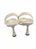 Jess 65 strappy mid heel, solid off white, gold hardware on strap, open toe, slight square toe