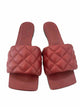 *PA for insole wear, red quilted leather lido flat slides, open toe, slip on sandals, solid red, w dustbag