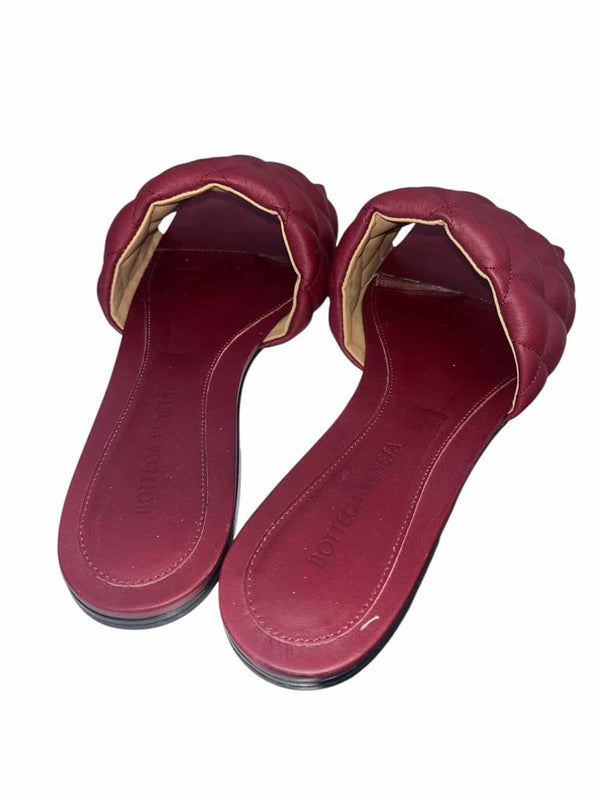 The rich burgundy hue of these Bottega Veneta Burgundy Size 38 Shoes brings refined color to any curated wardrobe. This pair, offered through authentic luxury resale, features red quilted leather lido flat slides with a chic open toe and convenient slip-on design. As a pre-loved designer find, these women’s consignment fashion sandals are presented in very good condition and include a dustbag for added value. With a European size 38, this eye-catching footwear offers a polished option for those seeking both comfort and style from a renowned brand.