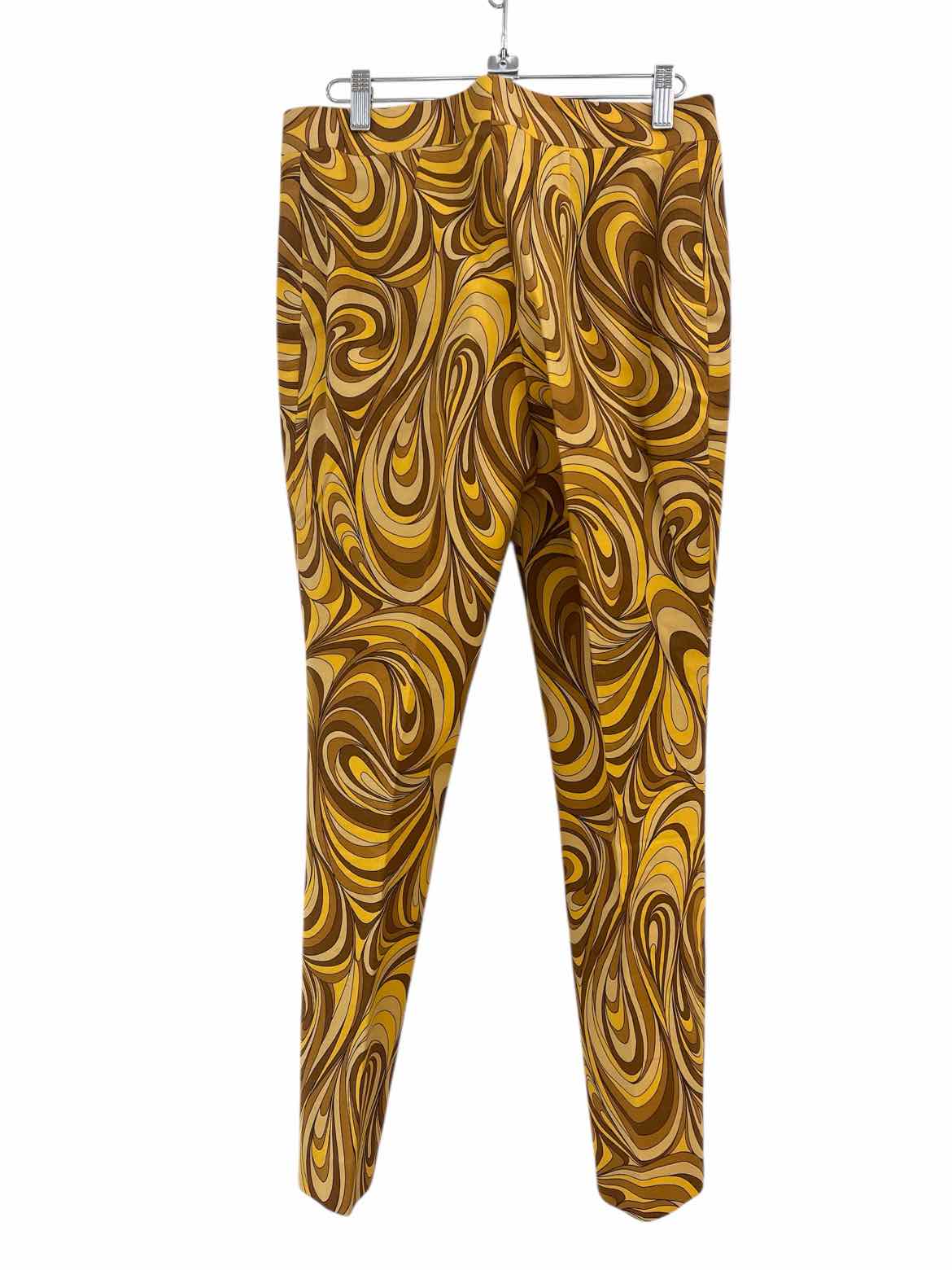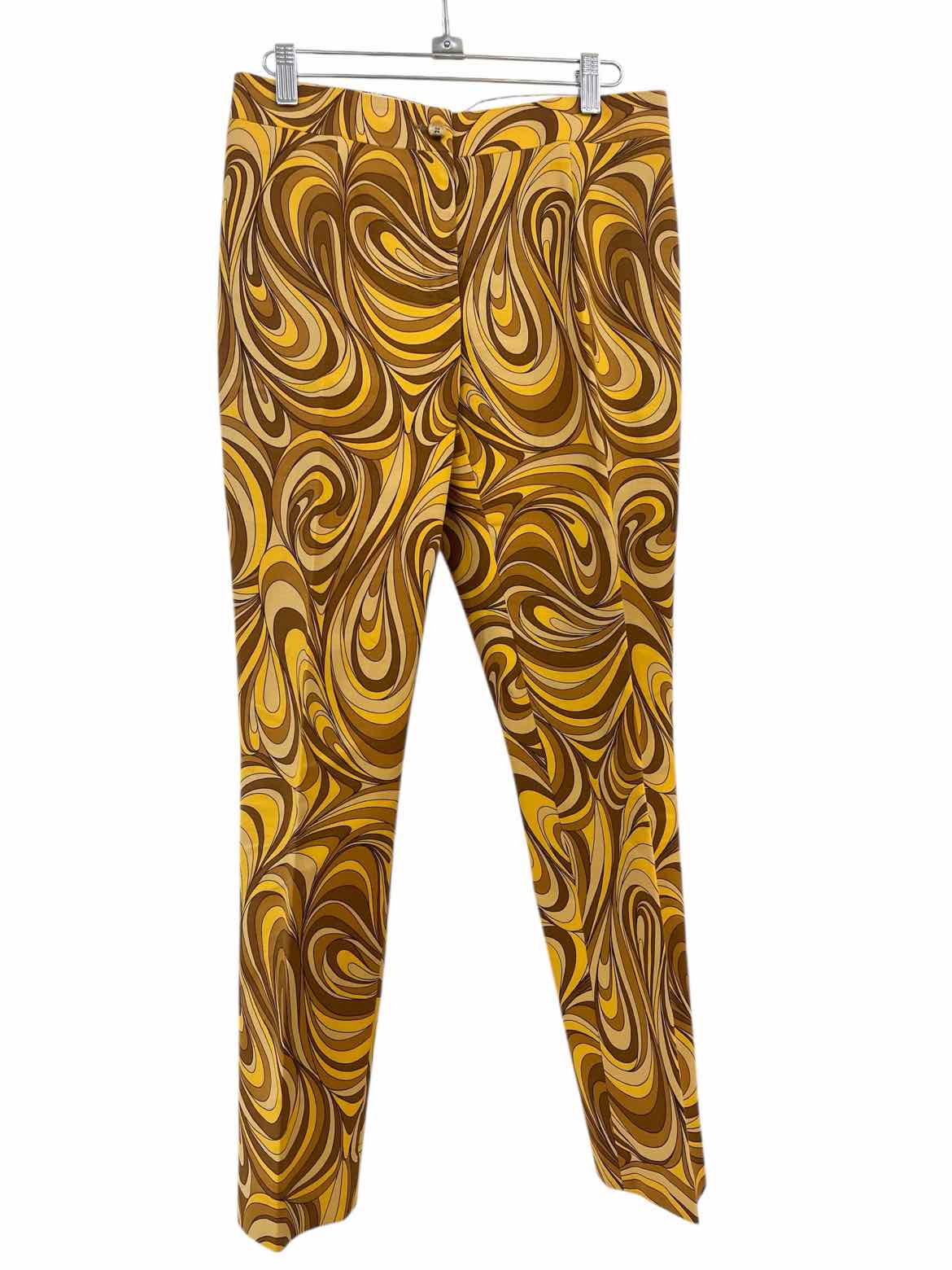 Celine slacks patterned ankle pant, 70's psychedelic swirl design, yellow, orange and brown