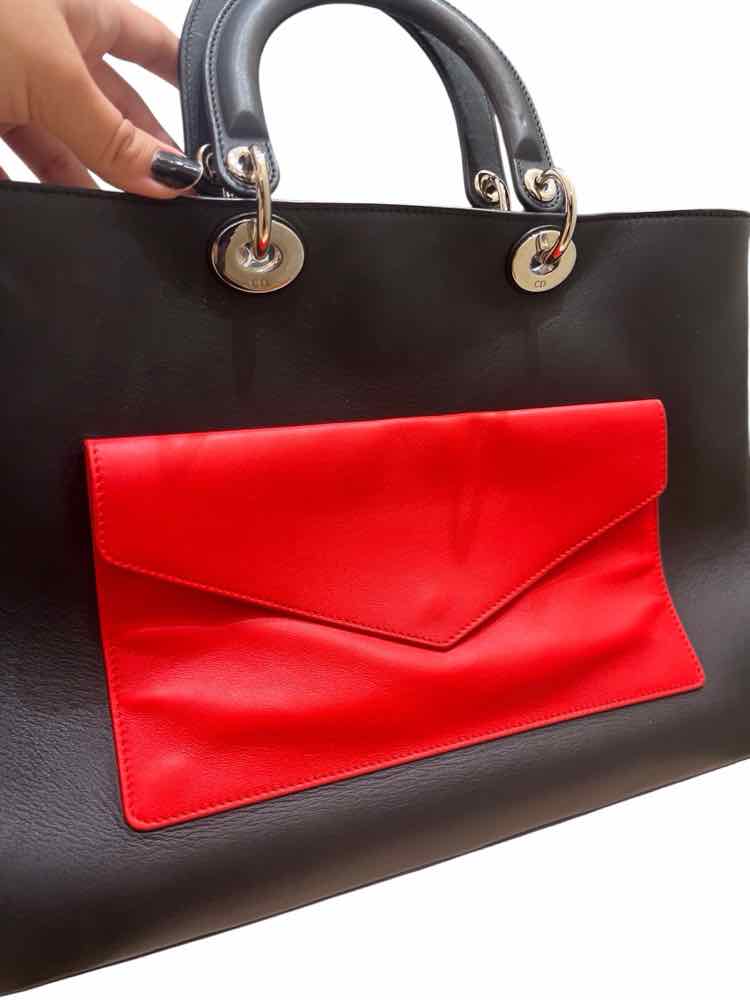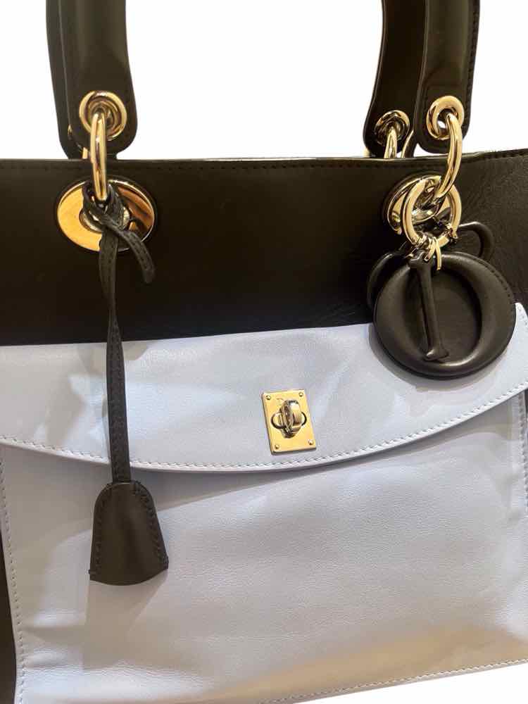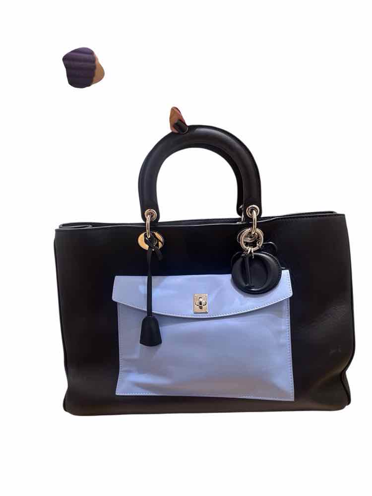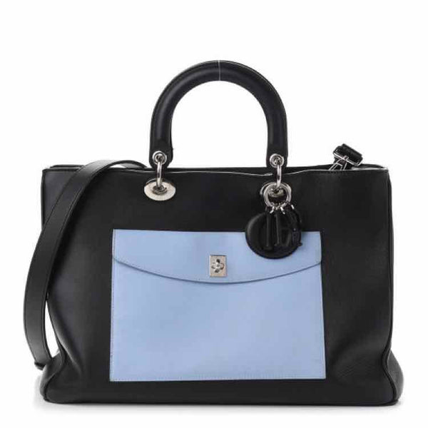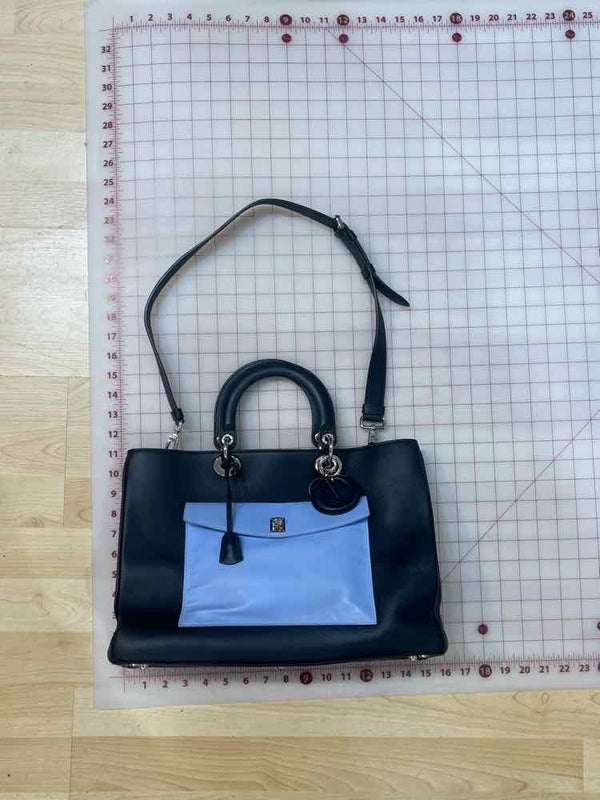 2014 Christian Dior Diorissimo RARE tote,smooth calfskin tri-color minimal wear, silver hardware, minimal wear. "DIOR" Lettering charm, blue pocket with twist lock. Comes with wallet,authentication card/proof of purchase