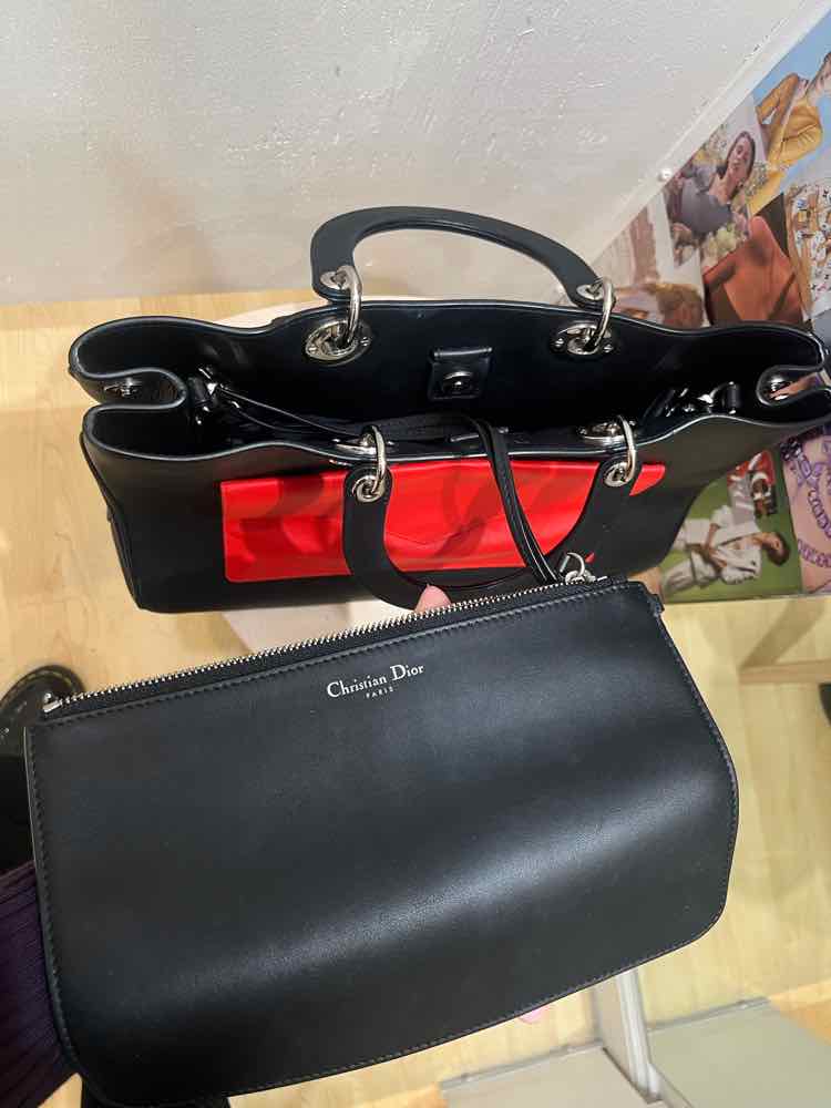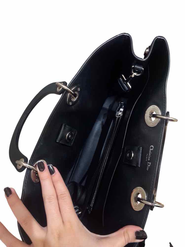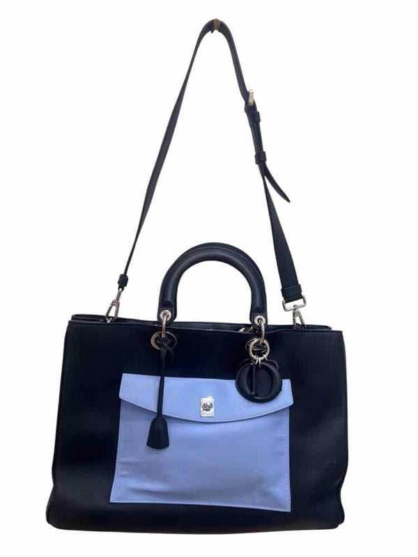 The navy blue hue of the Christian Dior Tote Navy Blue Handbag lends a refined and timeless appeal, making it an essential find for lovers of authentic luxury resale and women's consignment fashion. This pre-loved designer piece from 2014 features smooth calfskin leather in a rare tri-color combination, complemented by silver hardware and the iconic "DIOR" lettering charm. Minimal wear ensures it remains in excellent condition, and thoughtful touches like the blue pocket with twist lock add both flair and function. Complete with its original wallet, authentication card, and proof of purchase, this handbag is a beautiful addition to any curated collection.