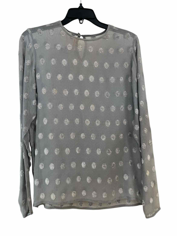 The blue and white polka dot pattern of the Salvatore Ferragamo Blue Size 4 Shirt brings a playful yet polished touch to any women's consignment fashion collection. This authentic luxury resale piece features a high neck with a chic black button closure and long sleeves, offering a refined silhouette. Designed in a comfortable blend fabric and presented in good pre-loved condition, it’s a distinctive choice for those seeking quality designer apparel. Discover the timeless appeal of Salvatore Ferragamo in this curated shirt, available exclusively through our trusted resale selection.