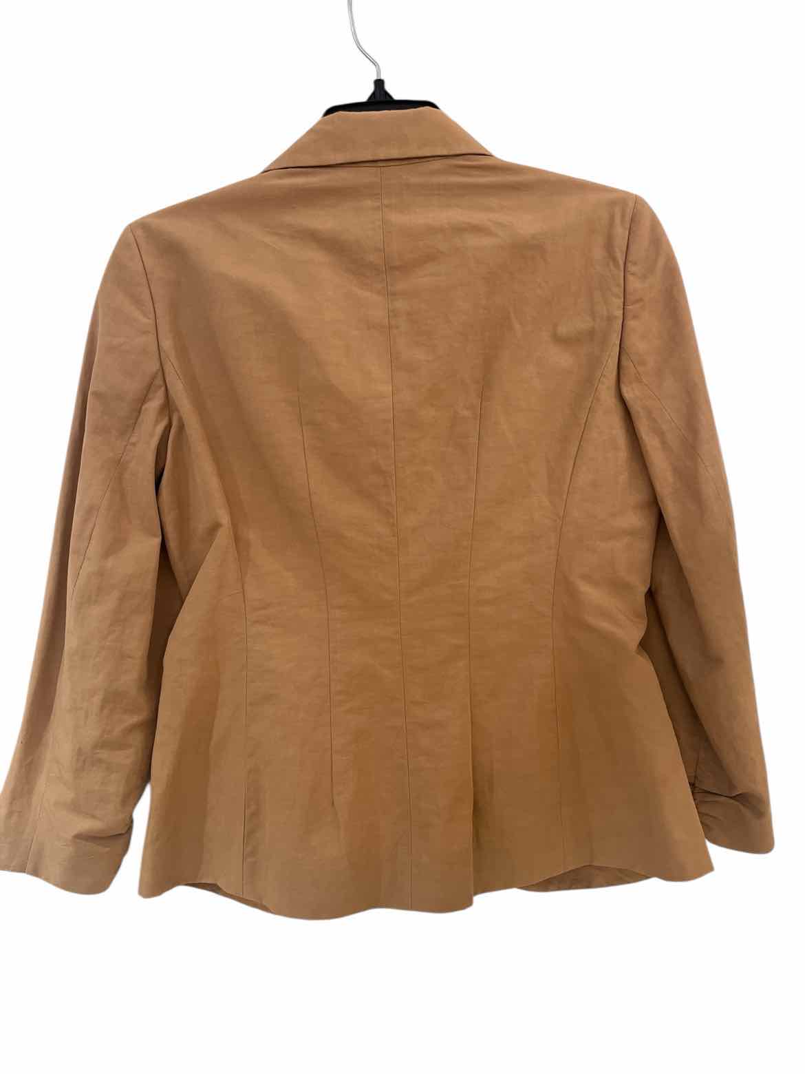 blazer with false pockets, rutched for a defined waist, and clasp waist closures, 2 false pockets, lining is silk, inner is cotton and linen