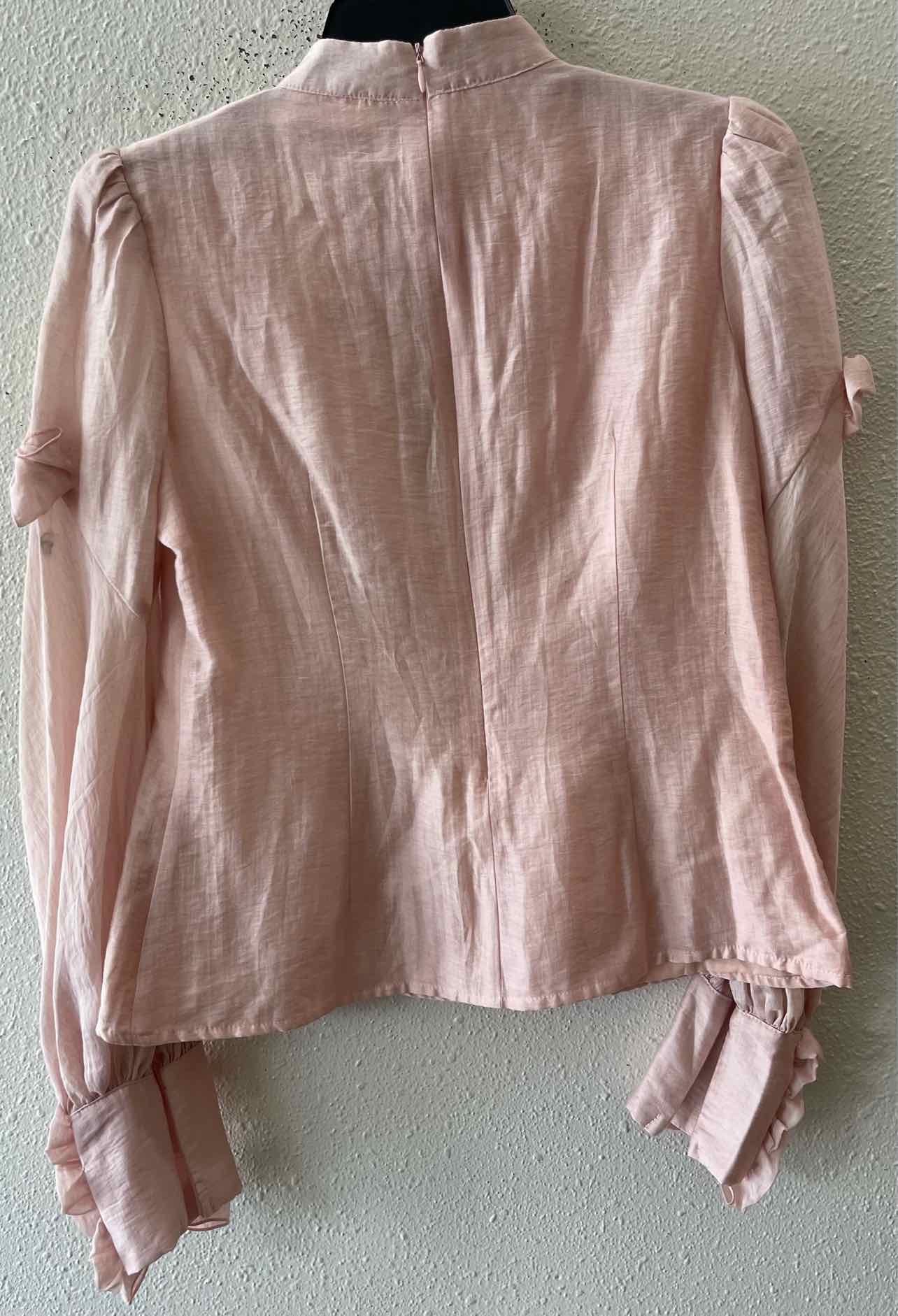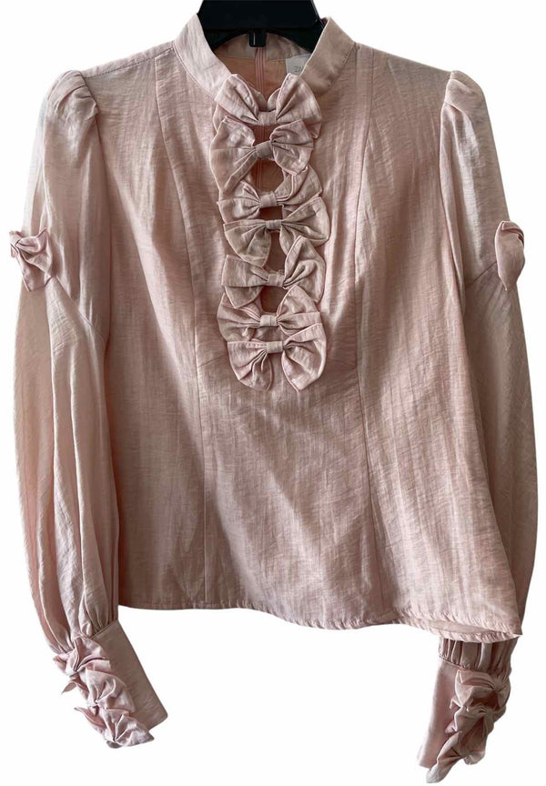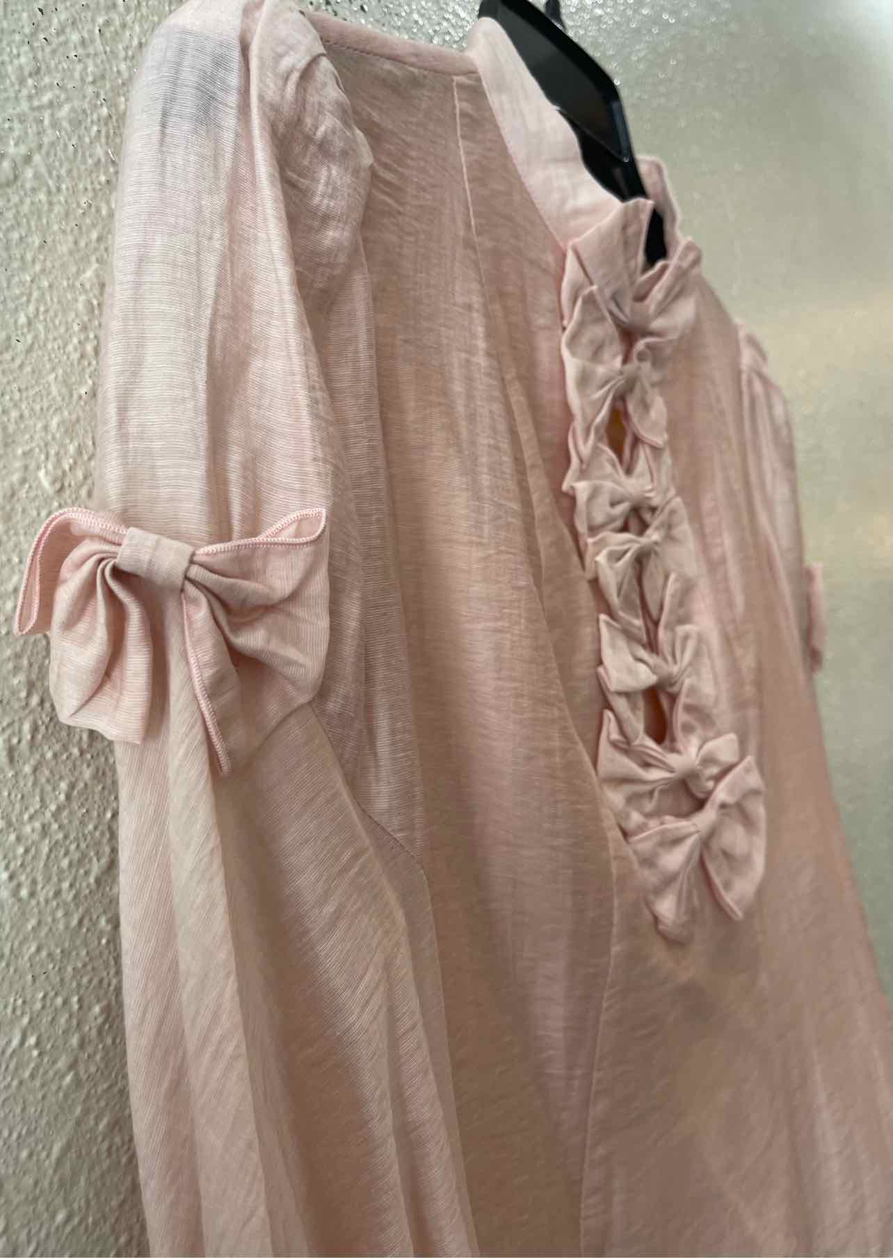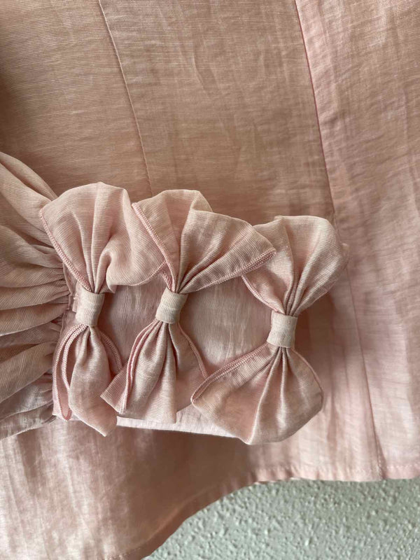 Long balloon sleeve, soft pink, 'Postcard bow' silk/linen blend top, bows down neckline/few on sleeve