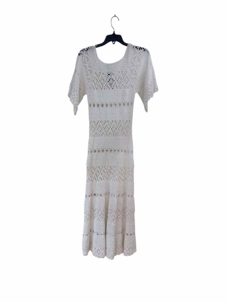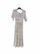 RP1 shirt sleeve, white doily and knit style maxi dress, form fitting, tassel and tie waist detail (6/11/25,600)