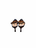 Carolyne slingback pump in black patent leather and suede, pointed toe, ankle strap, small heel