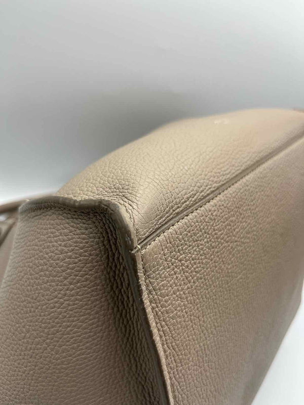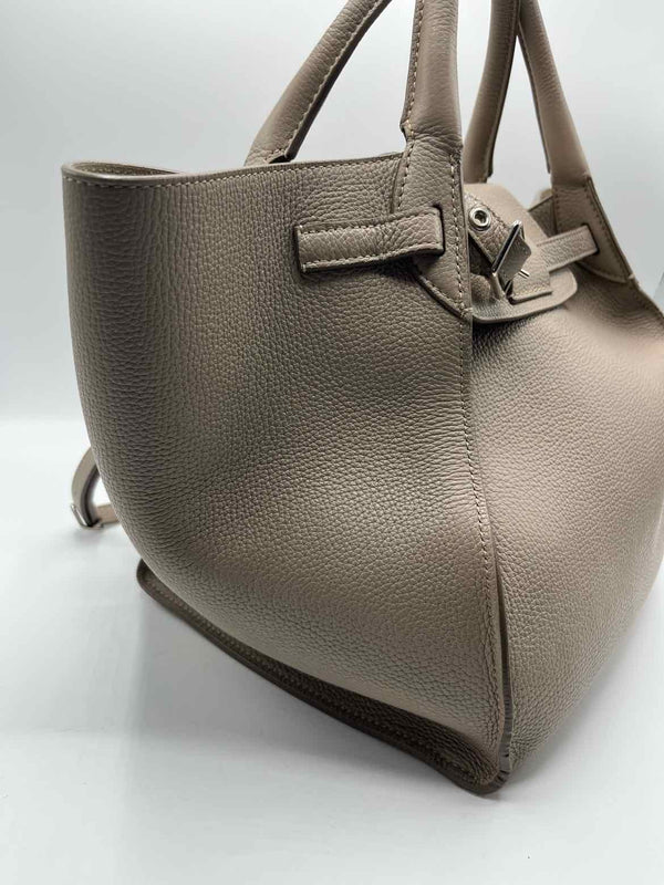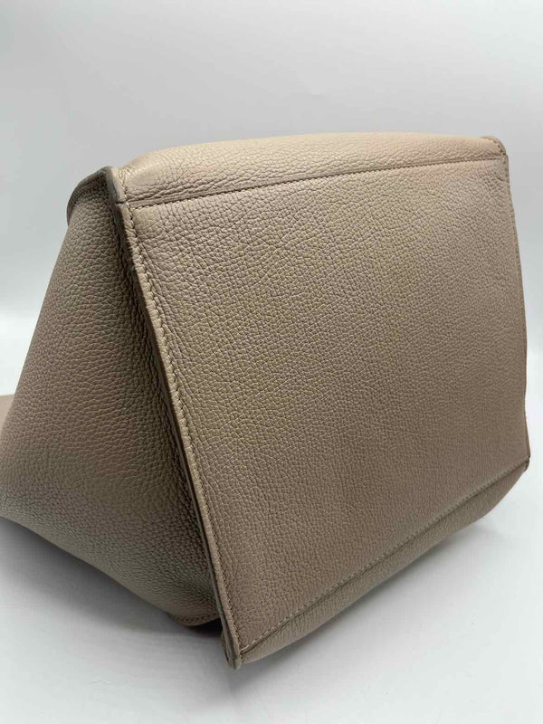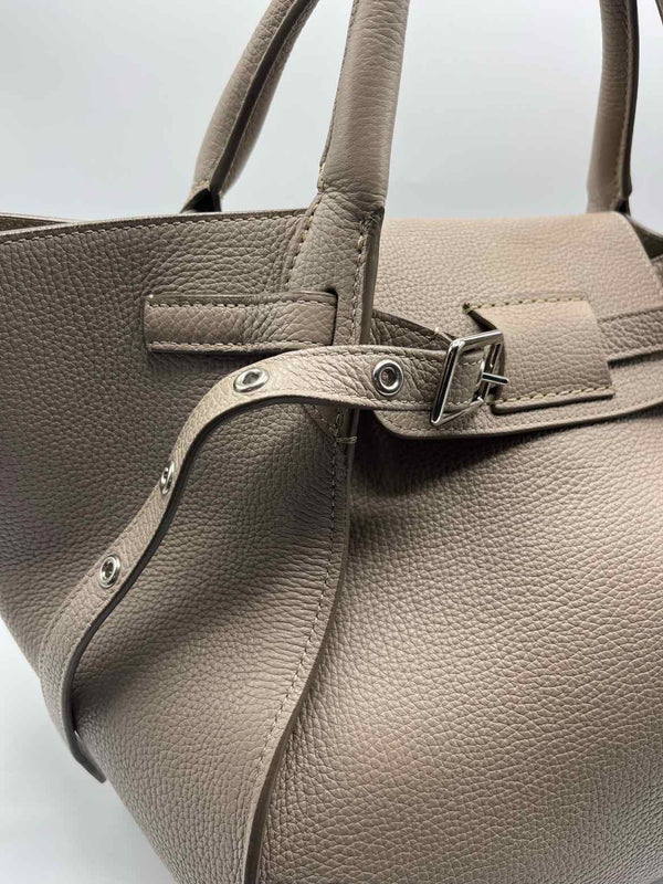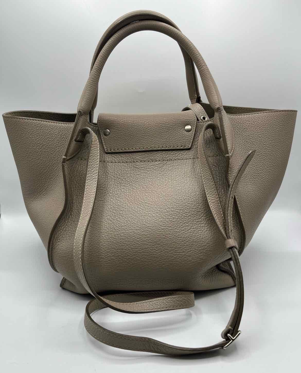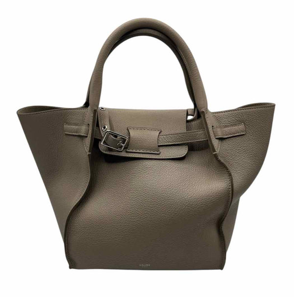 The dark beige hue of the Celine Small Big Bag shopper tote Dark Beige Handbag brings a versatile, polished touch to any wardrobe. As a pre-loved designer find from our authentic luxury resale collection, this women's consignment fashion piece pairs beautifully with both everyday and tailored looks. Crafted from grained calfskin leather and accented by silver tone hardware, it features a small flap closure, dual handles, and a flat shoulder strap for adaptable carrying. The tonal lining with a handy interior pocket enhances its practicality, while its very good condition speaks to careful previous ownership. Elevate your collection with the timeless appeal of this sought-after Celine accessory.