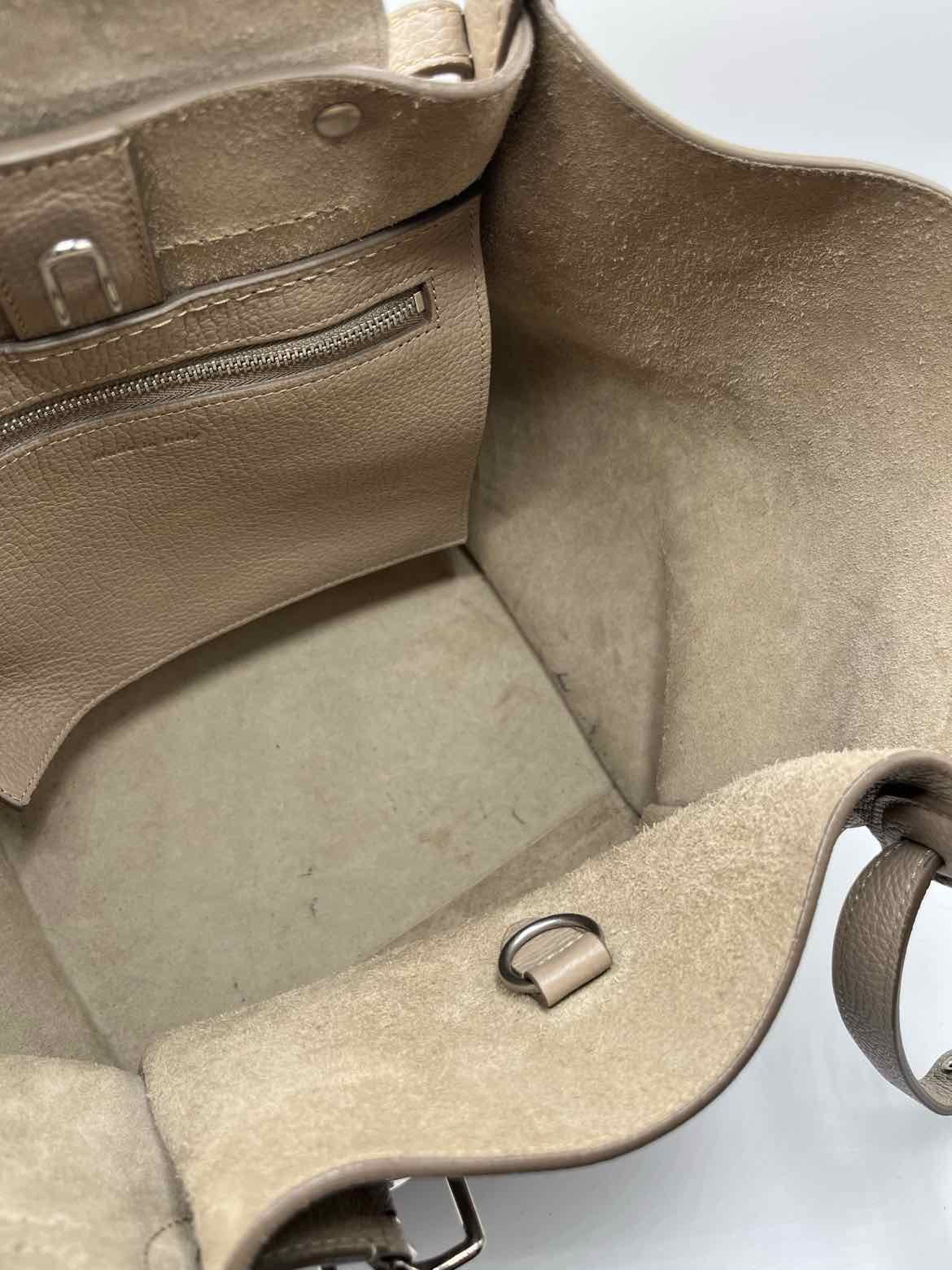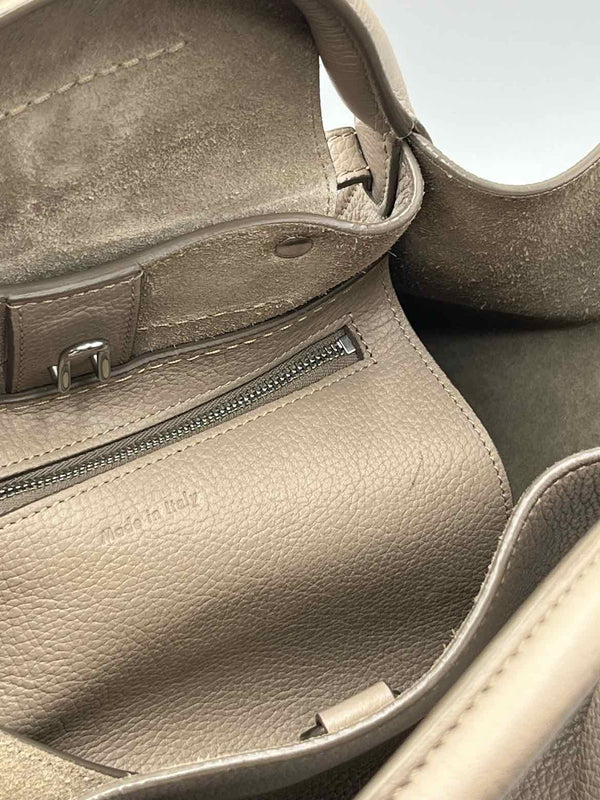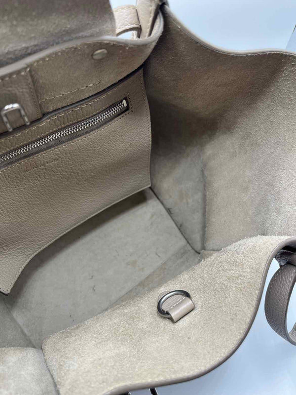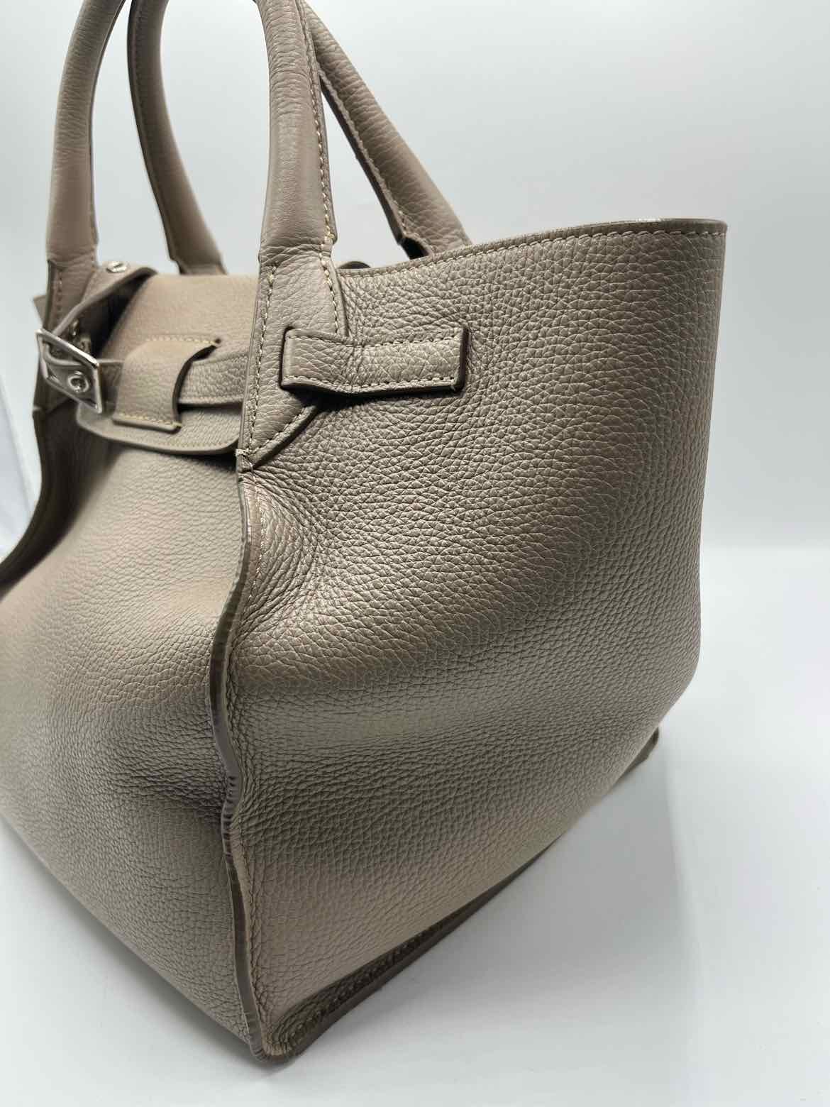 The dark beige hue of the Celine Small Big Bag shopper tote Dark Beige Handbag brings a versatile, polished touch to any wardrobe. As a pre-loved designer find from our authentic luxury resale collection, this women's consignment fashion piece pairs beautifully with both everyday and tailored looks. Crafted from grained calfskin leather and accented by silver tone hardware, it features a small flap closure, dual handles, and a flat shoulder strap for adaptable carrying. The tonal lining with a handy interior pocket enhances its practicality, while its very good condition speaks to careful previous ownership. Elevate your collection with the timeless appeal of this sought-after Celine accessory.